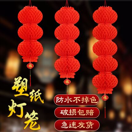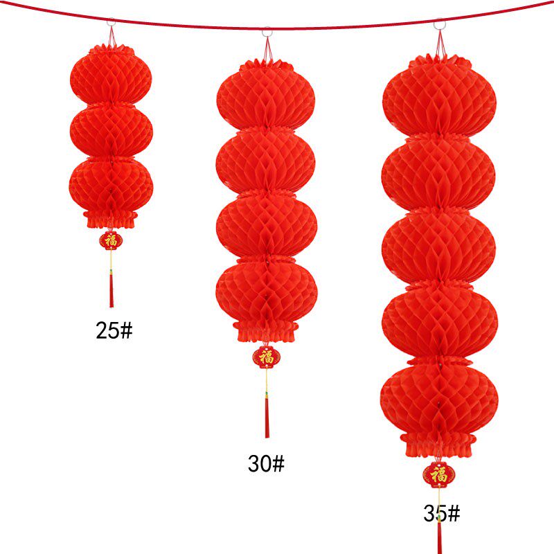 新年春节装饰连串纸灯笼结婚庆元旦挂饰商场开业蜂窝小红树上灯笼