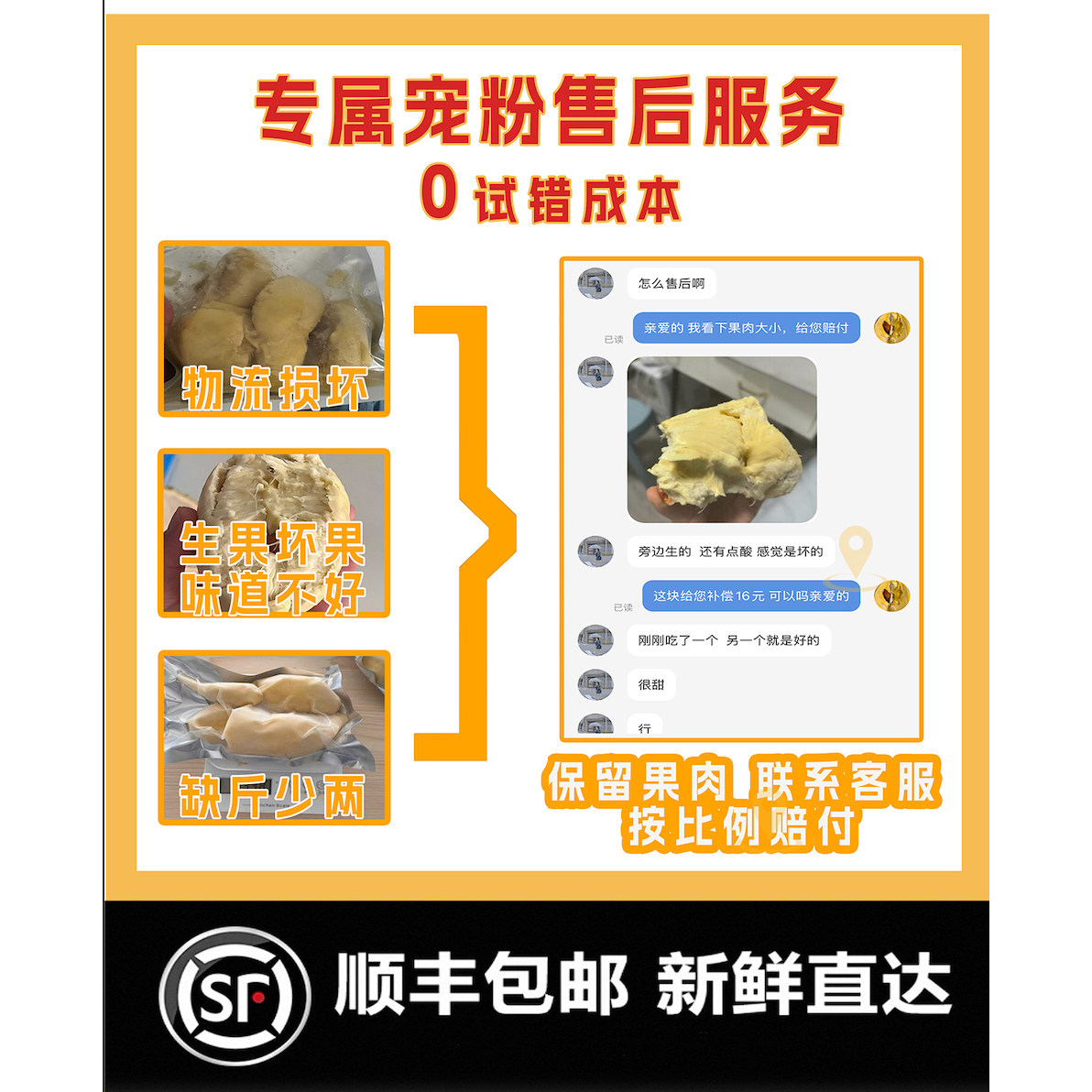 泰国金枕冷冻榴莲肉顺丰包邮