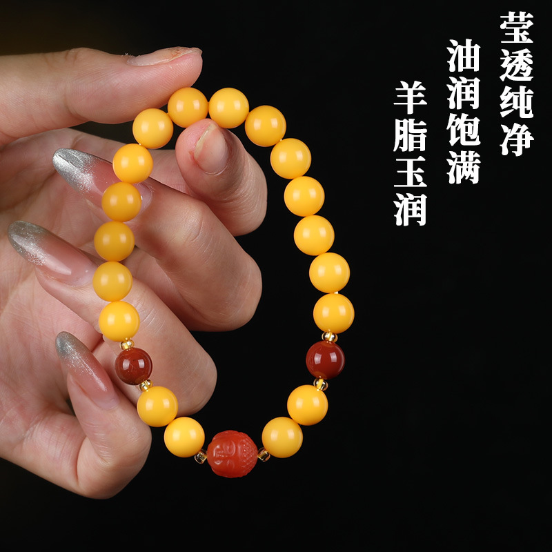 唐今玉天然俄料蜜蜡手串老蜜手链搭配南红手工设计圆珠琥珀手串