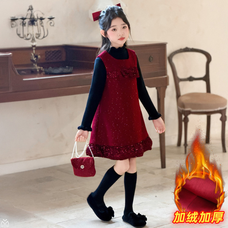 女童连衣裙秋冬2025新款今年流行爆款裙子加绒儿童新年裙子年服