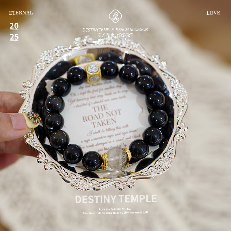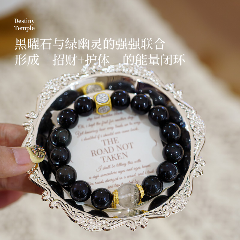 月老祠堂绿幽灵黑曜石手串手链本命年珠冰种黑曜石父亲节礼物