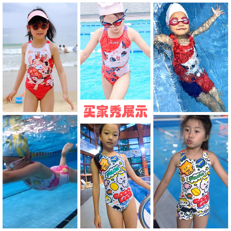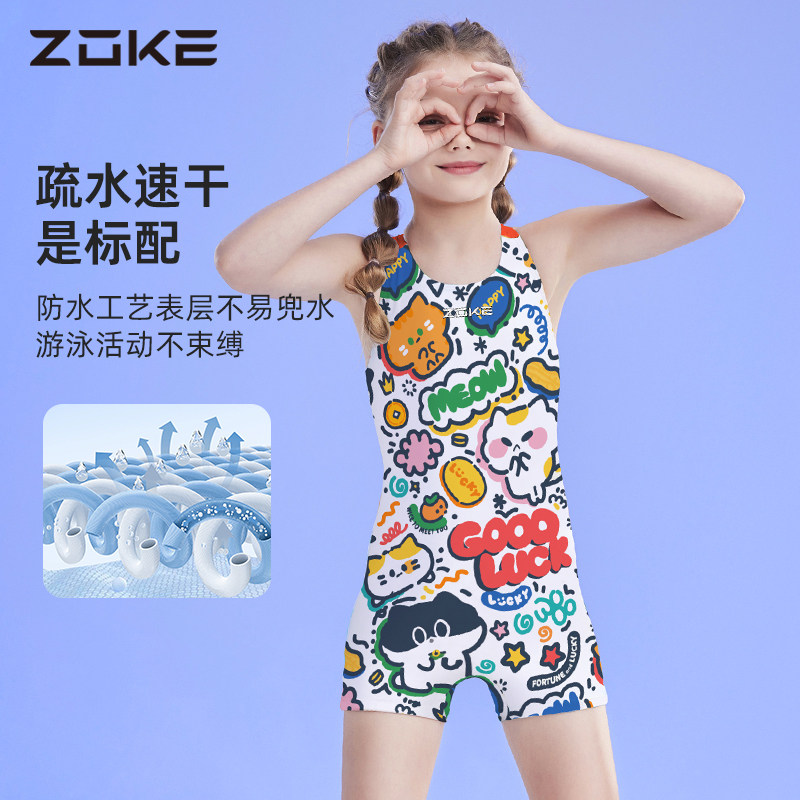 zoke洲克儿童泳衣女孩中大童游泳衣专业训练连体青少年温泉泳装