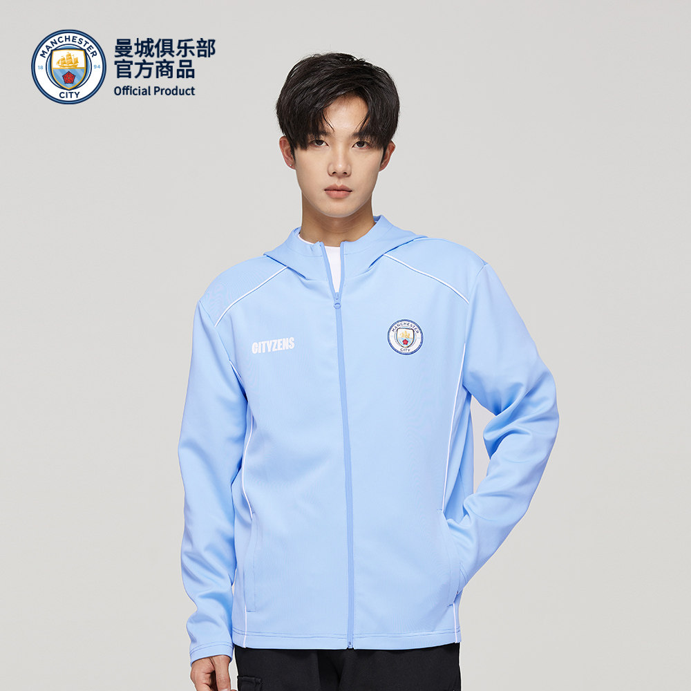 【官方正版】曼城俱乐部 | 天蓝连帽运动外套夹克衫休闲运动修身