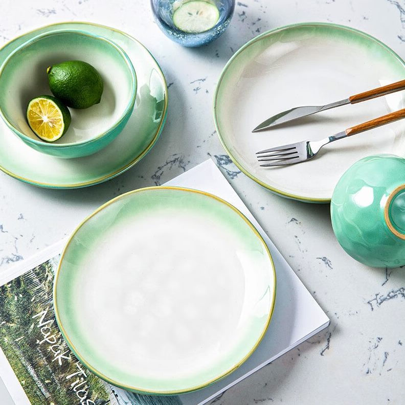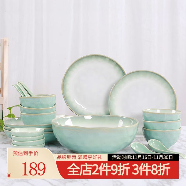玉头套中式绿色餐具套装装22青碗碟荷泉餐具