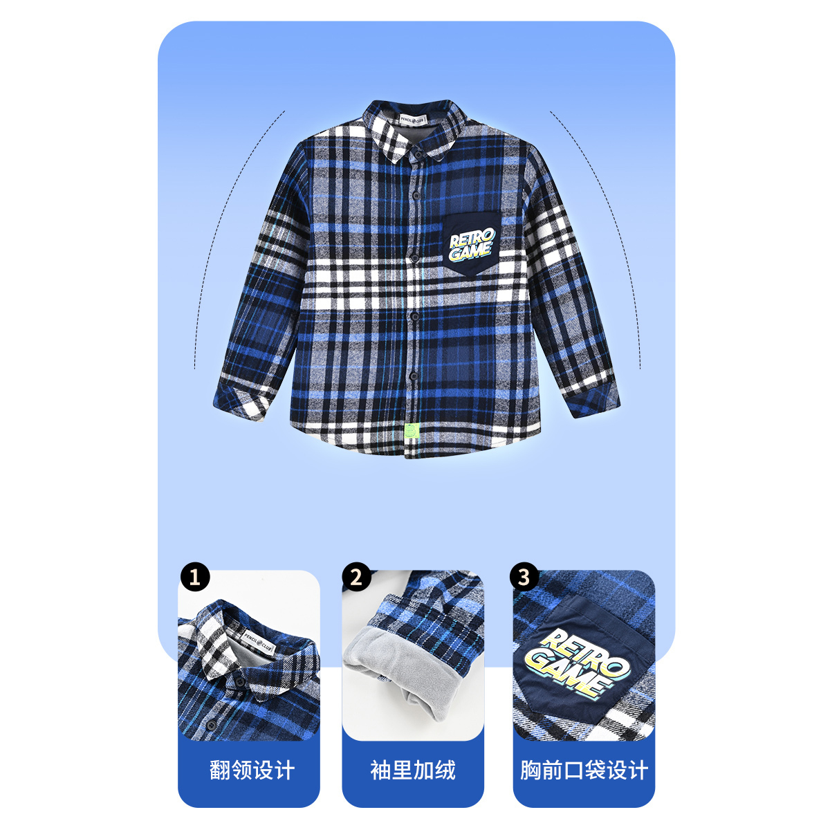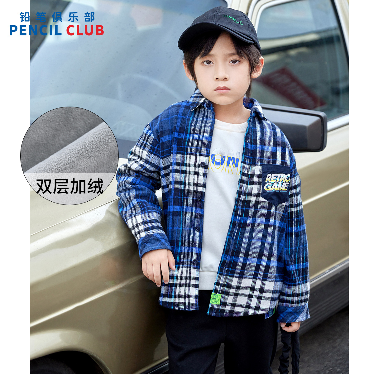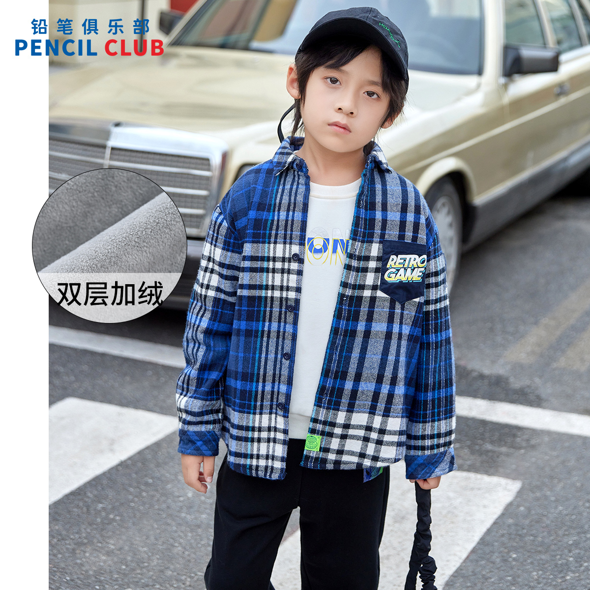 铅笔俱乐部2025秋冬新款男童外套中大童加厚加绒衬衫儿童保暖上衣