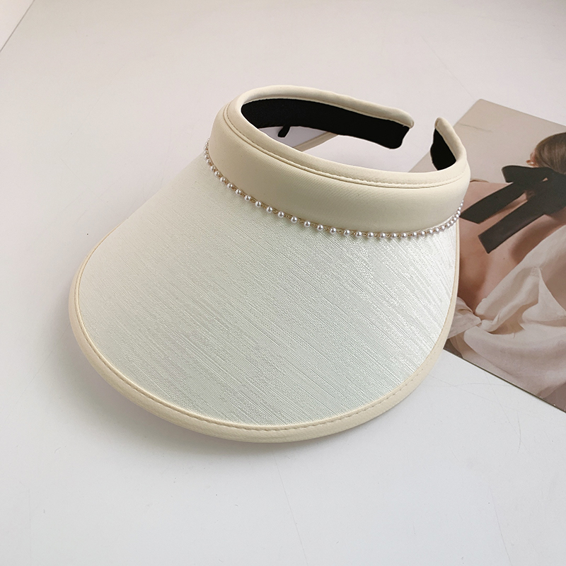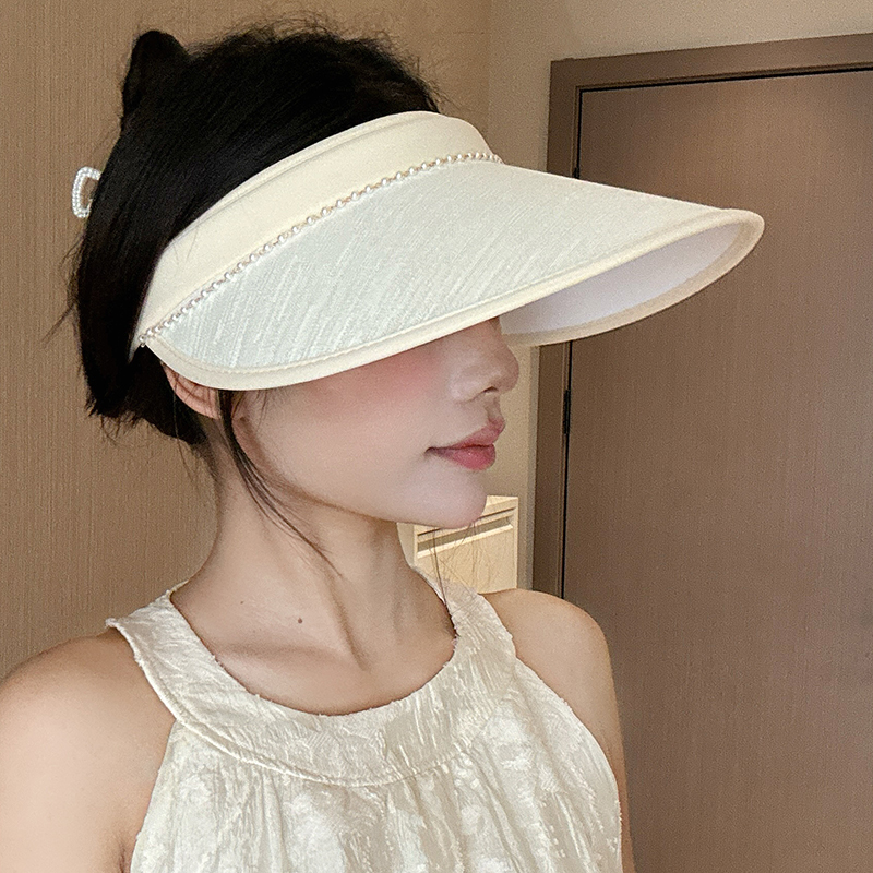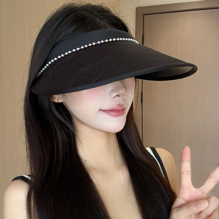 2025新款夏季珍珠空顶帽女发箍式时尚遮阳帽遮脸防晒太阳帽子潮款