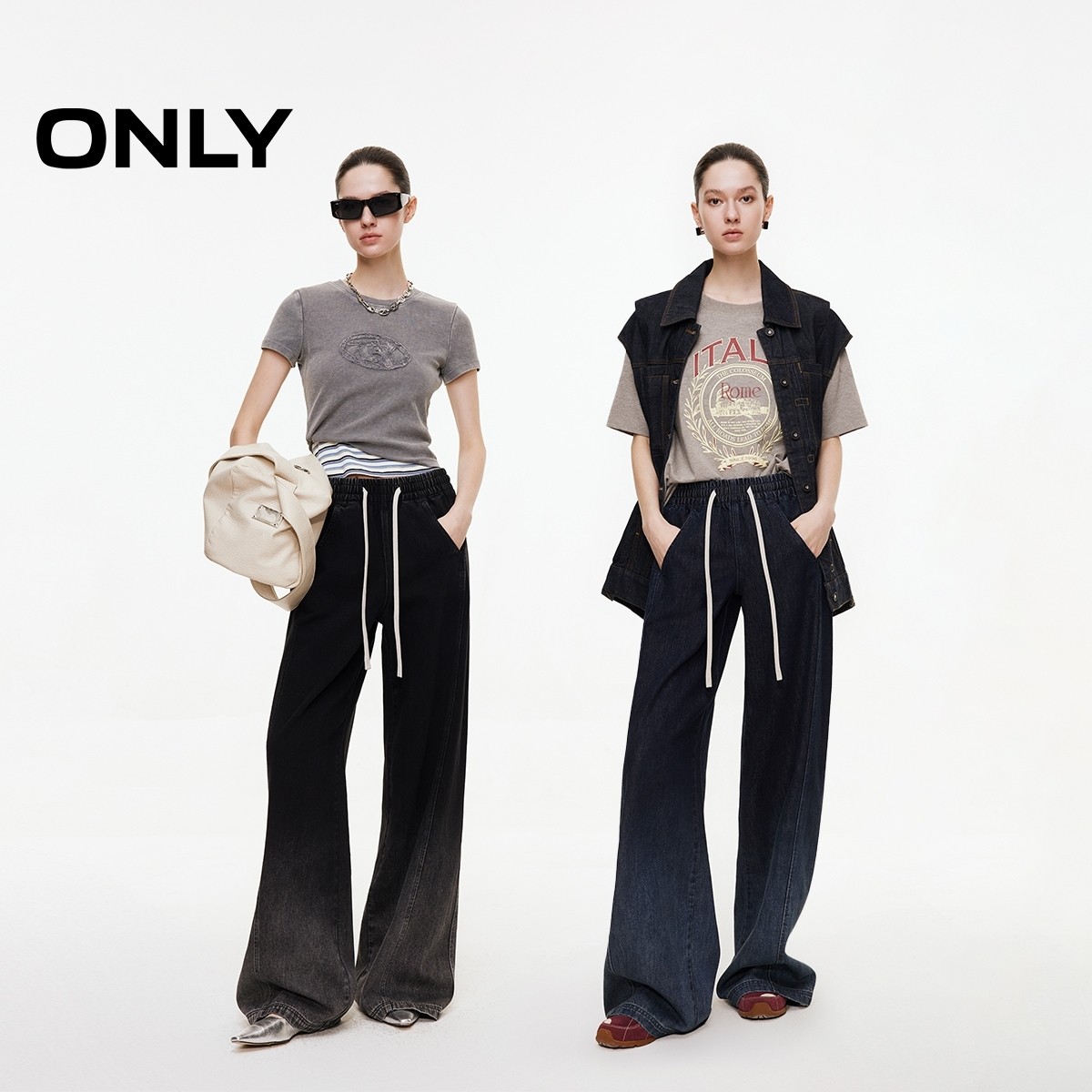 绫致ONLY2025秋冬新款渐变水洗设计宽松直筒裤长裤牛仔裤女