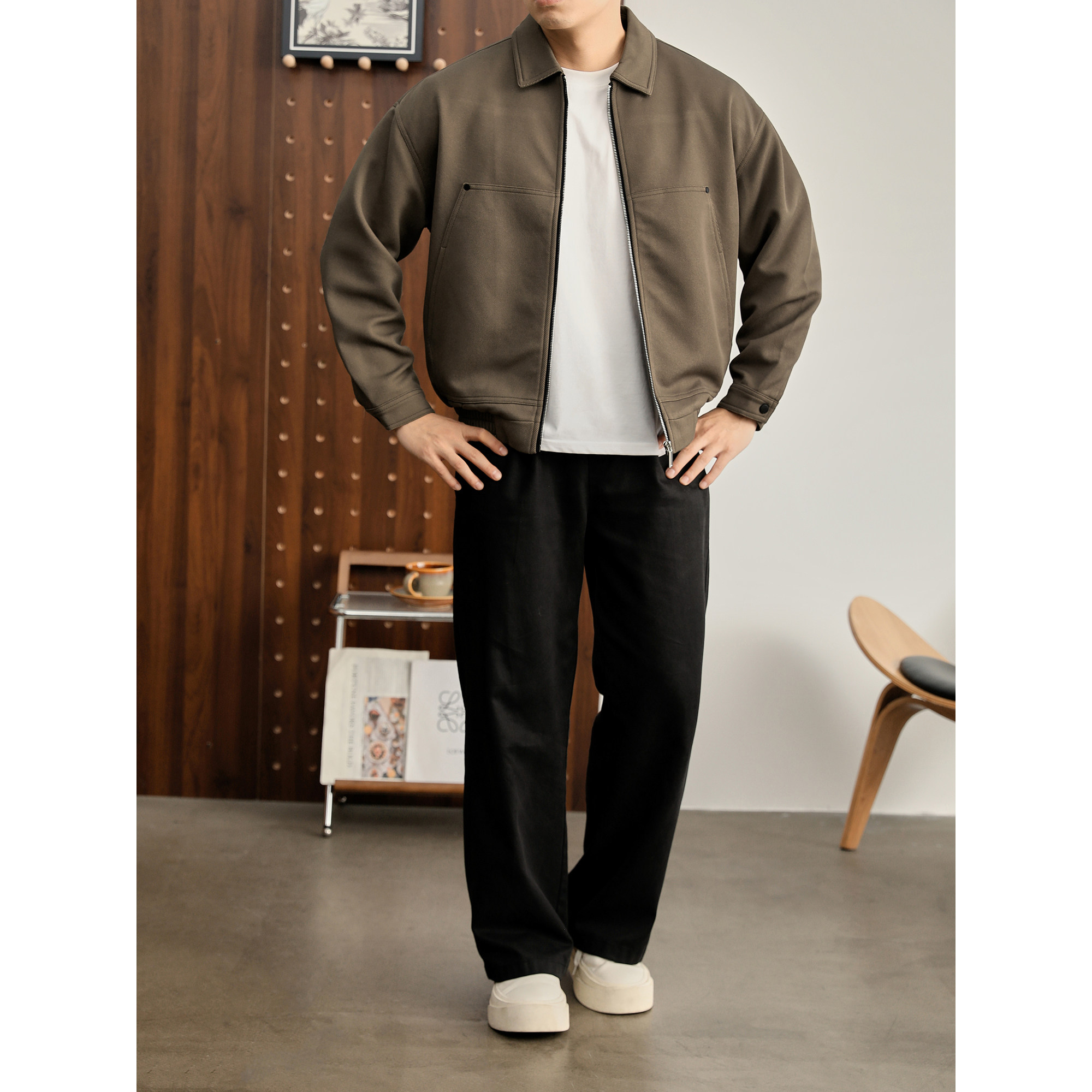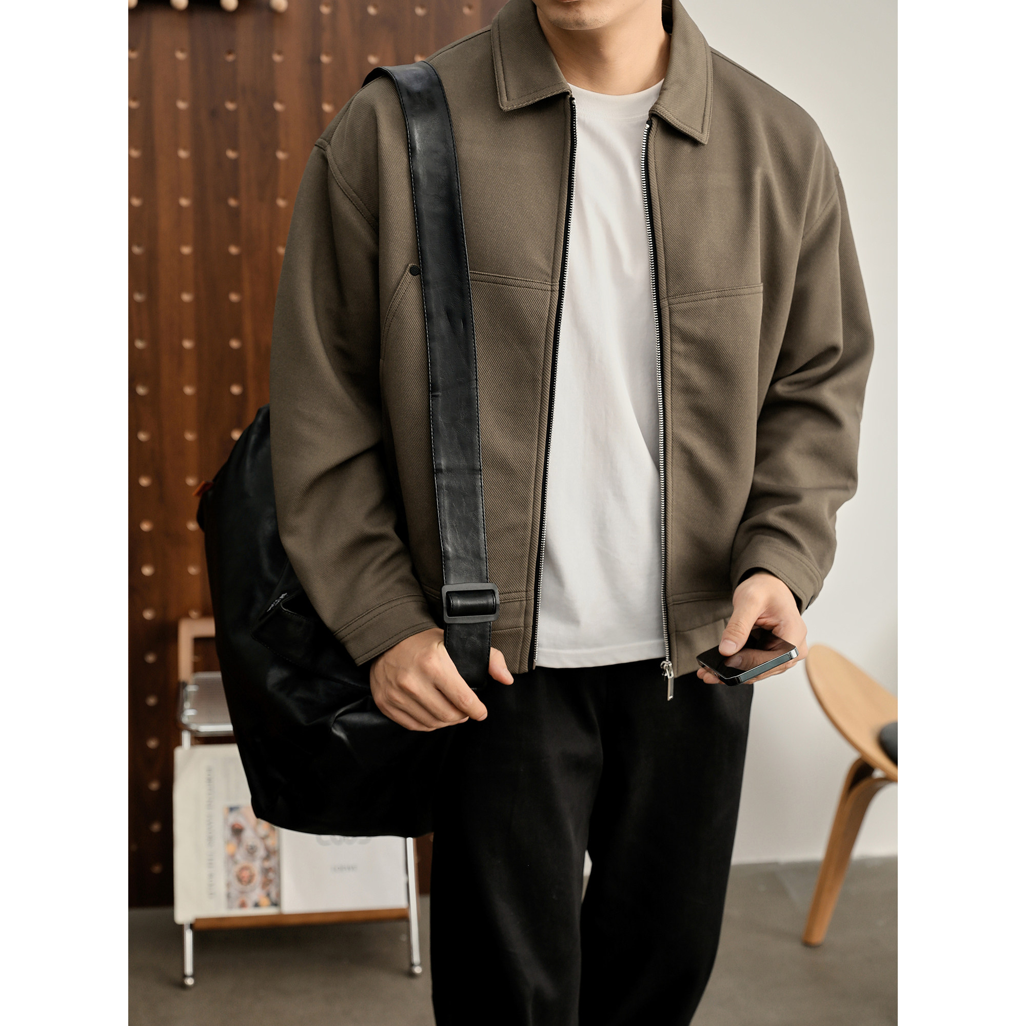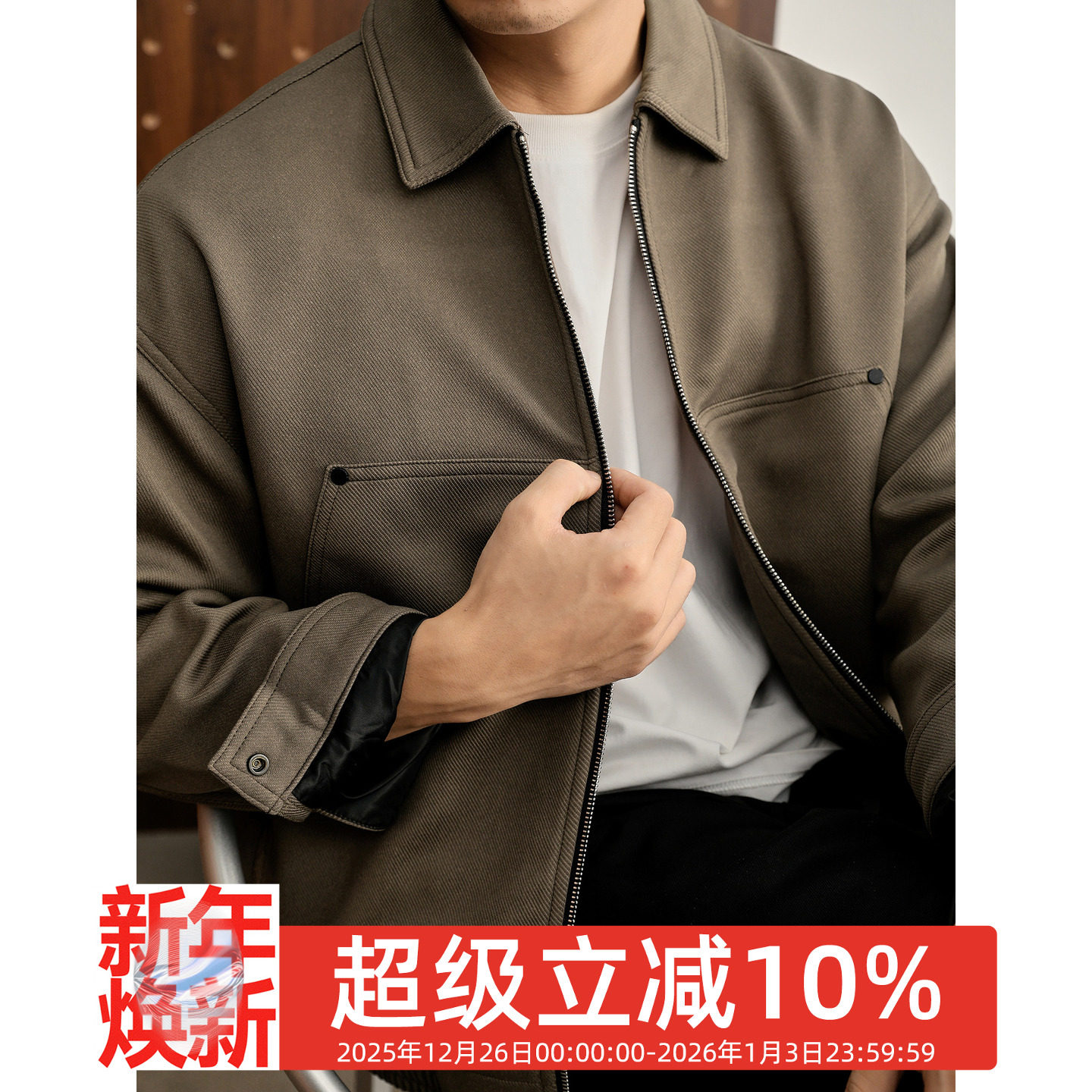 LUUD 底特律斜纹松紧下摆廓形夹克男翻领极简设计感短宽版型外套