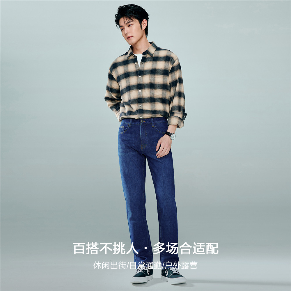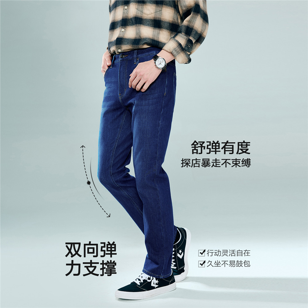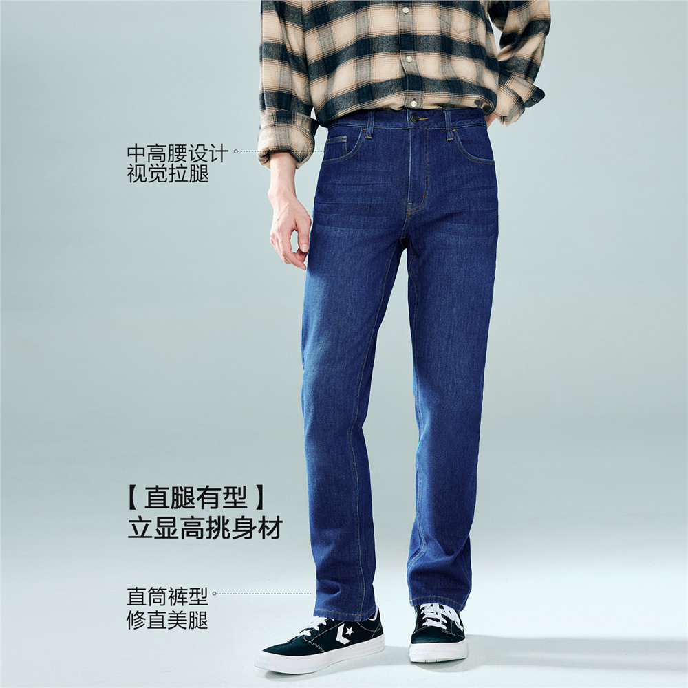 佐丹奴猫须牛仔裤男内抓毛水洗牛仔男裤中腰直筒牛仔长裤13115155