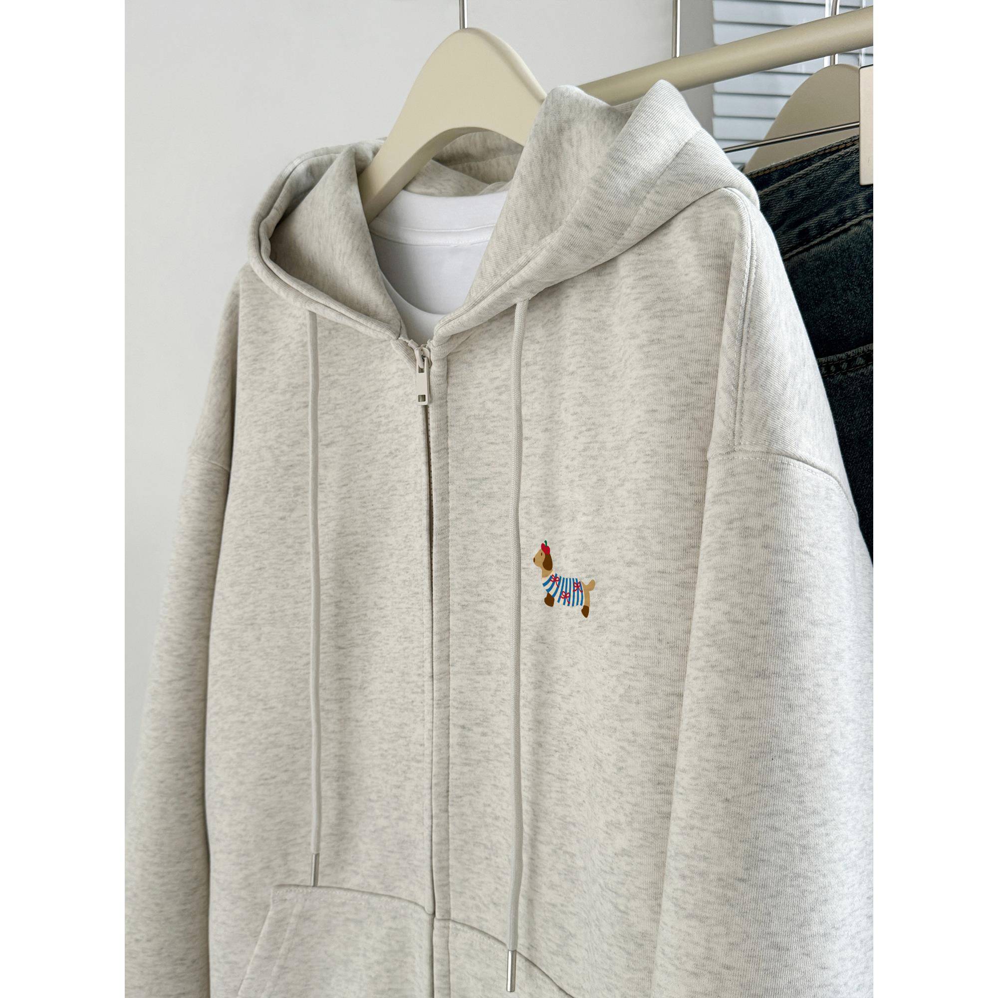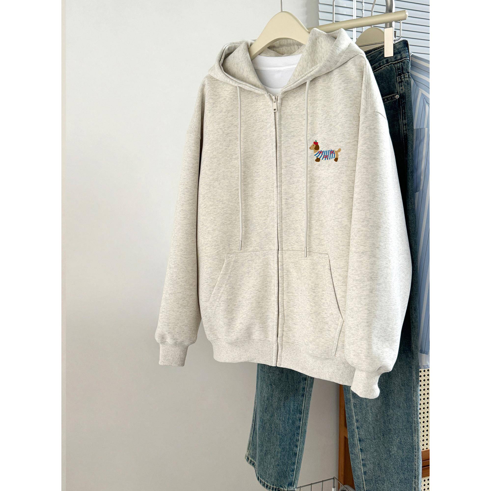 花灰色连帽腊肠狗开衫卫衣女2025年春秋新款韩版宽松慵懒风外套