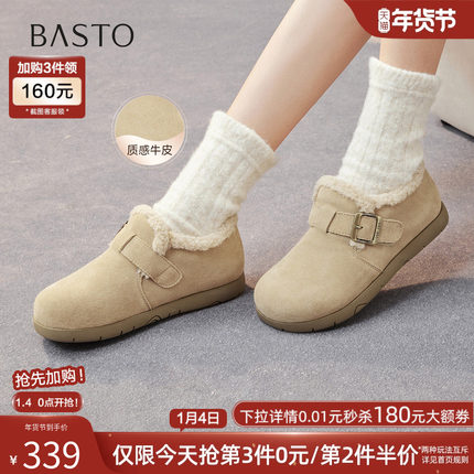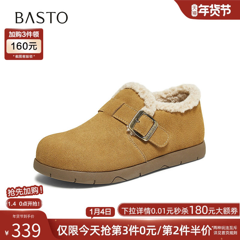 百思图2025冬季商场新款加绒保暖勃肯鞋雪地靴毛毛女单鞋D3565DM5