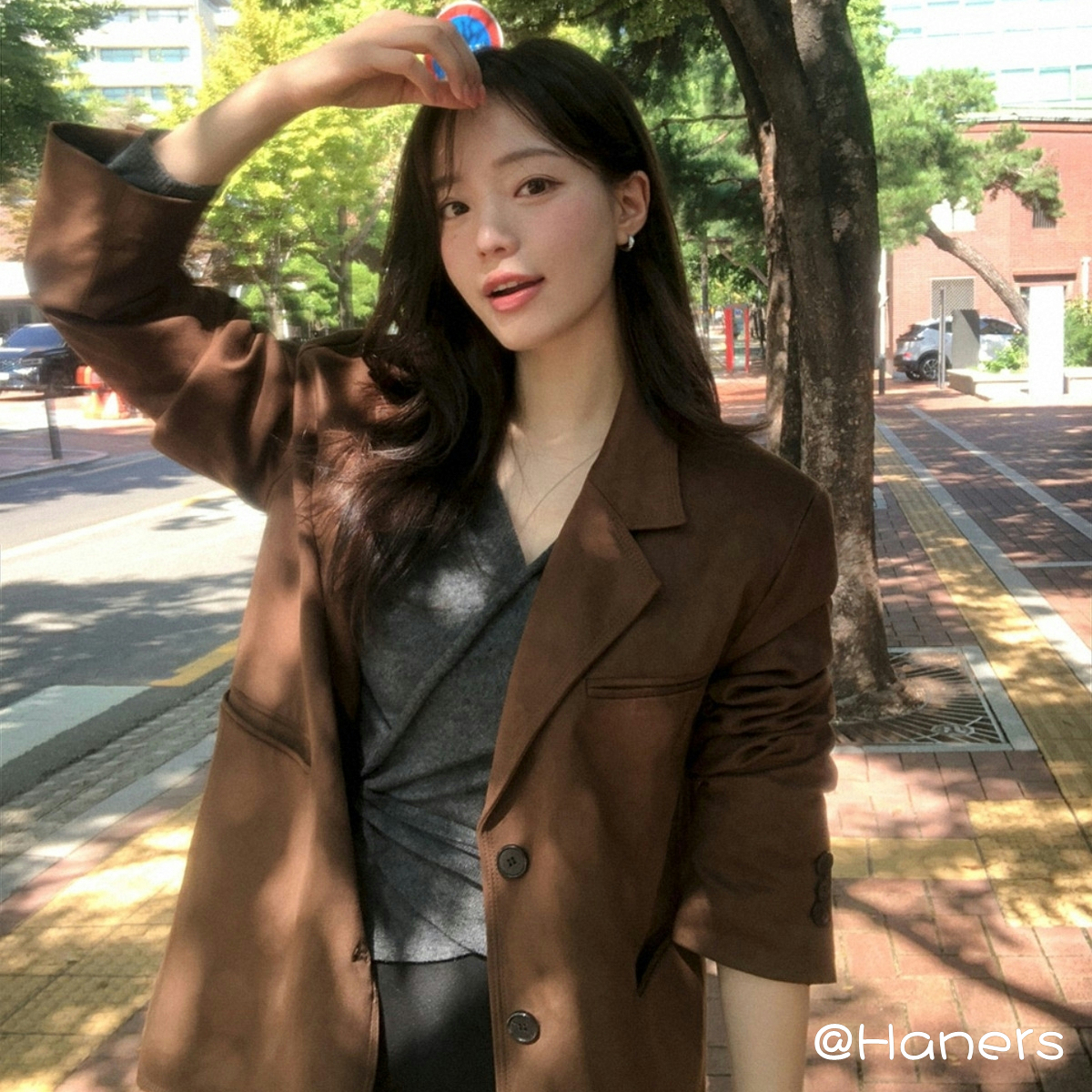 Haners家韩国代购女设计师款2025年秋经典百搭麂皮外套