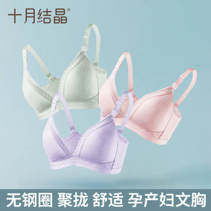 十月结晶哺乳文胸孕妇产妇内衣纯棉便携喂奶防走光无钢圈聚拢蕾丝