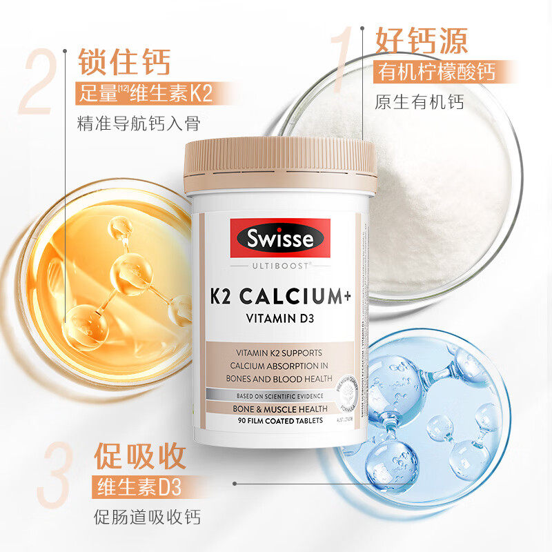 斯维诗维生素K2钙k2d3运动营养钙成人腿抽筋关节钙片澳大利亚进口