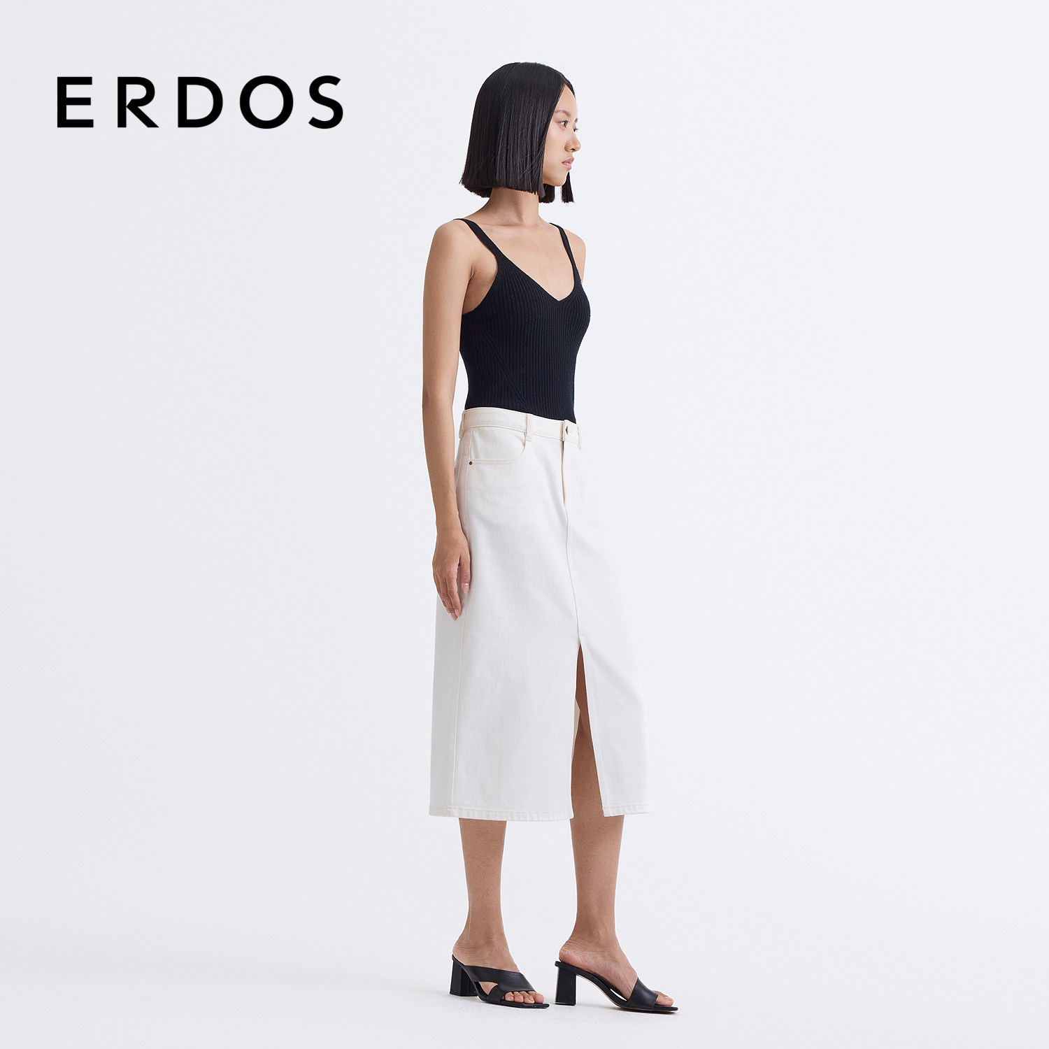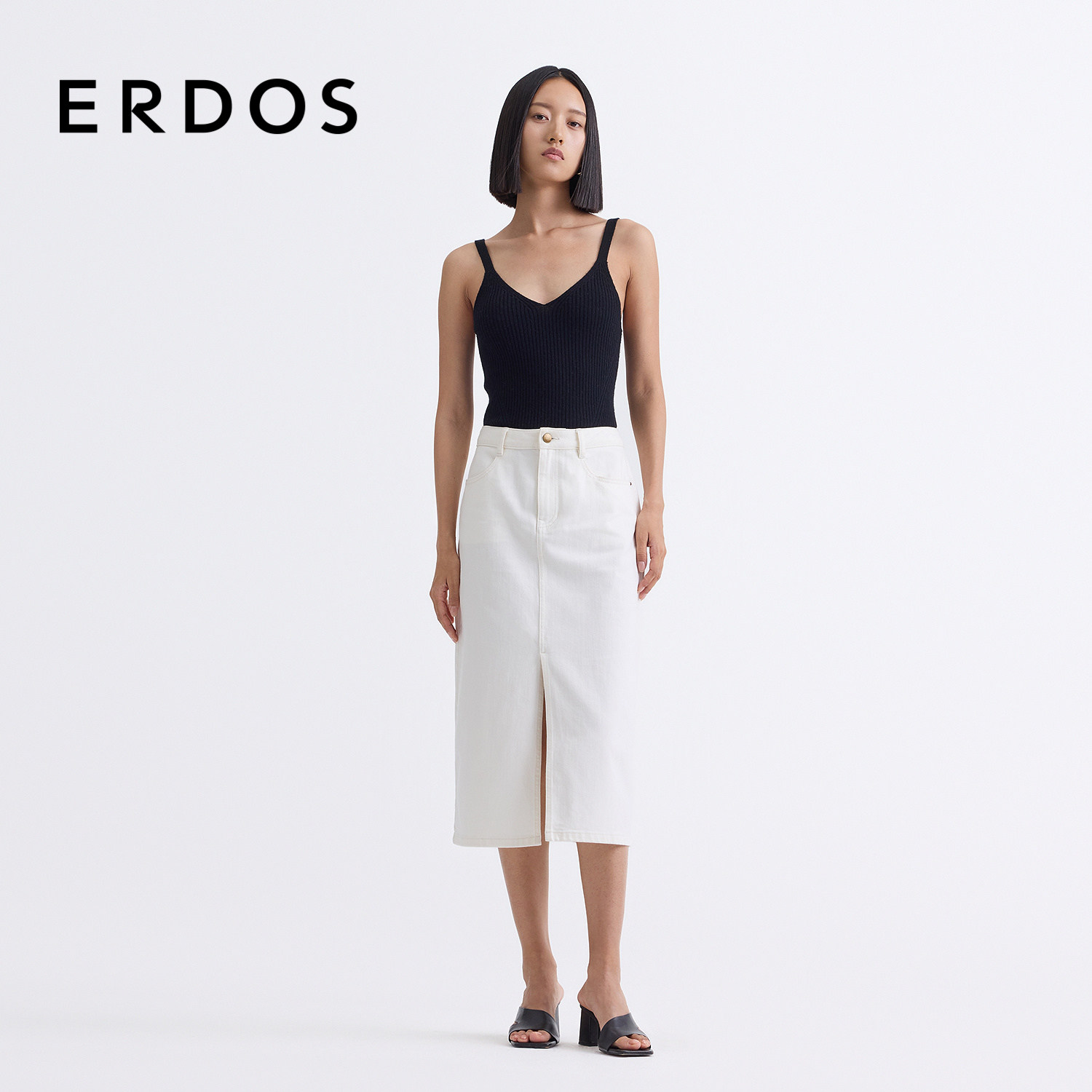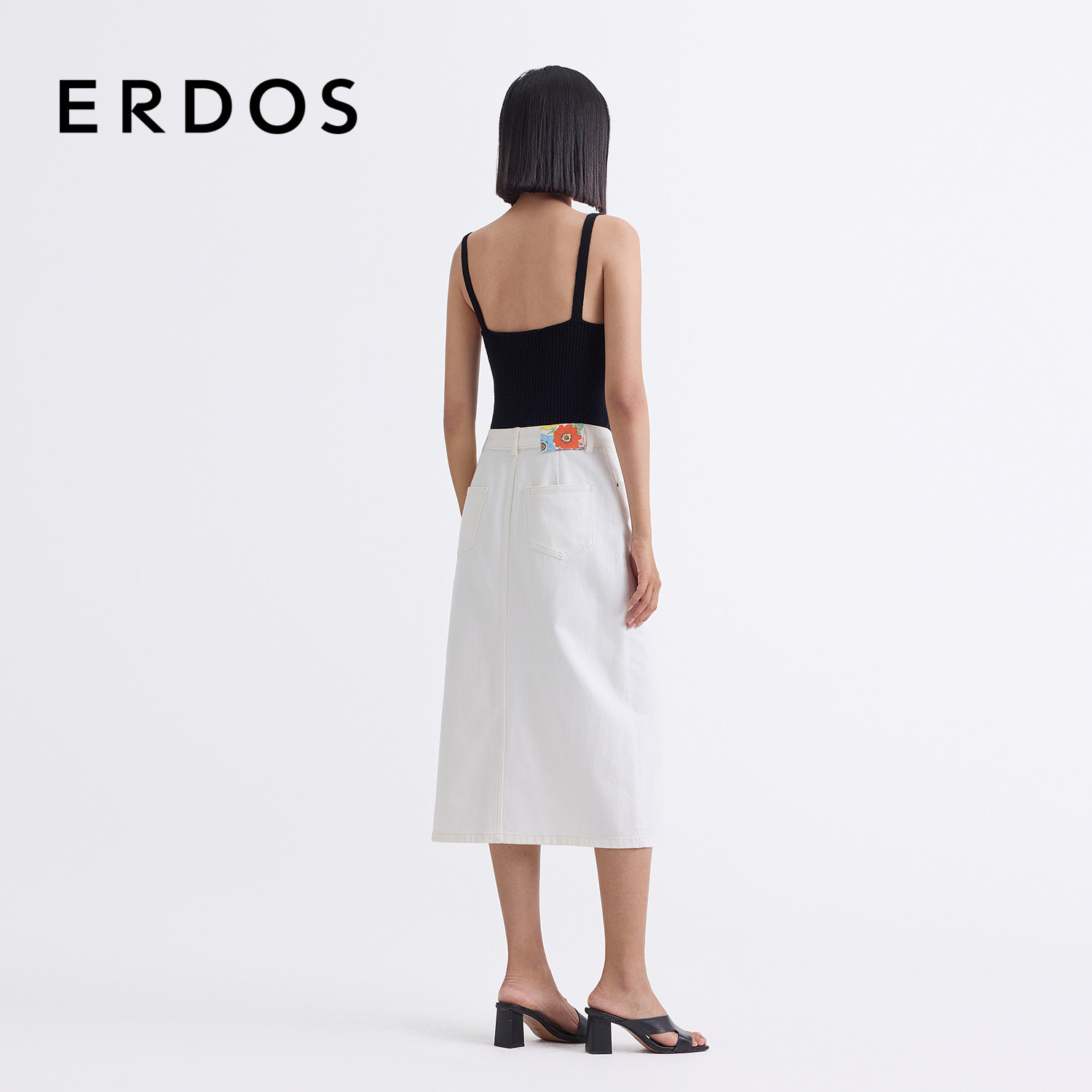 【三醋酸牛仔棉半身裙】ERDOS 白色水洗中长款直筒裙女25年夏新品