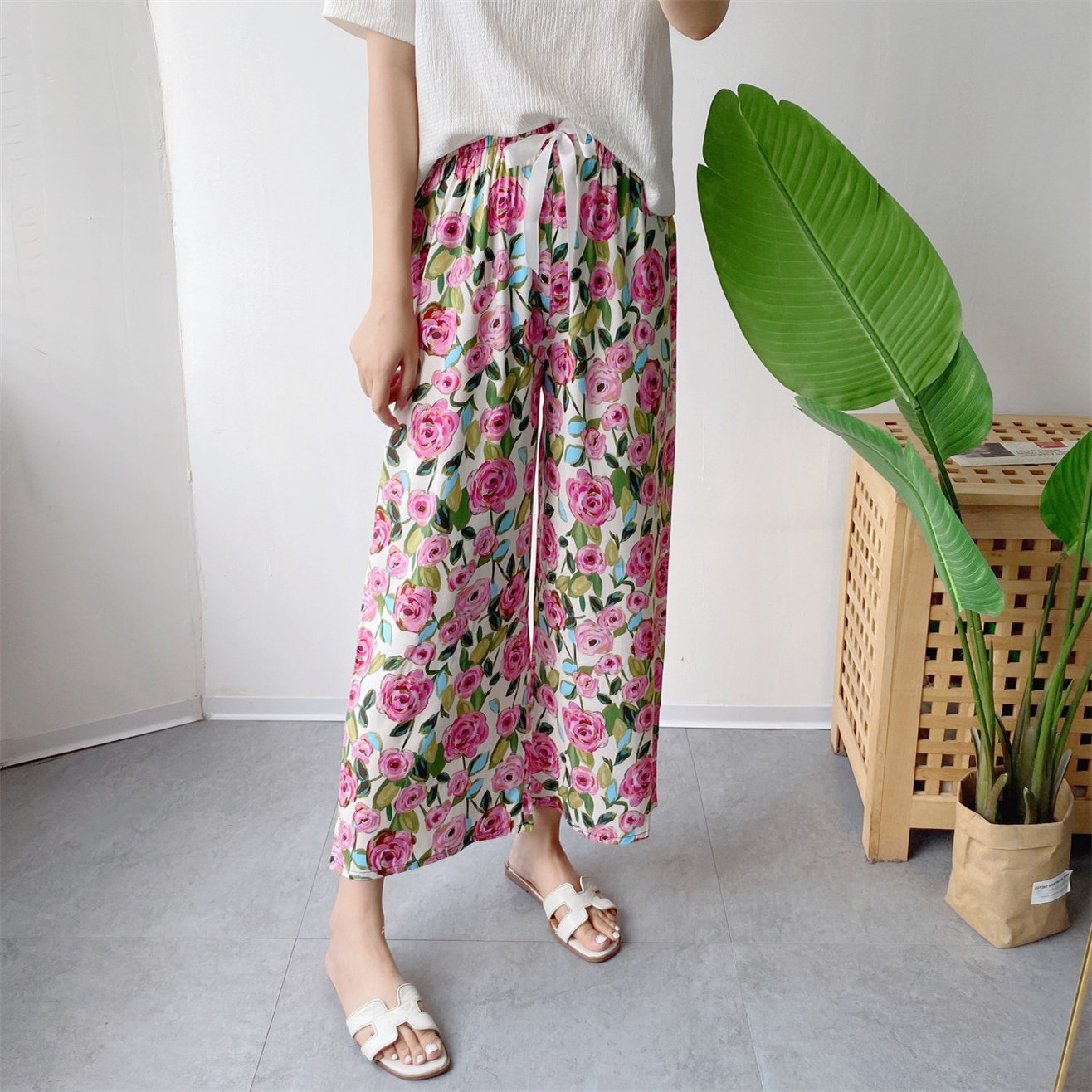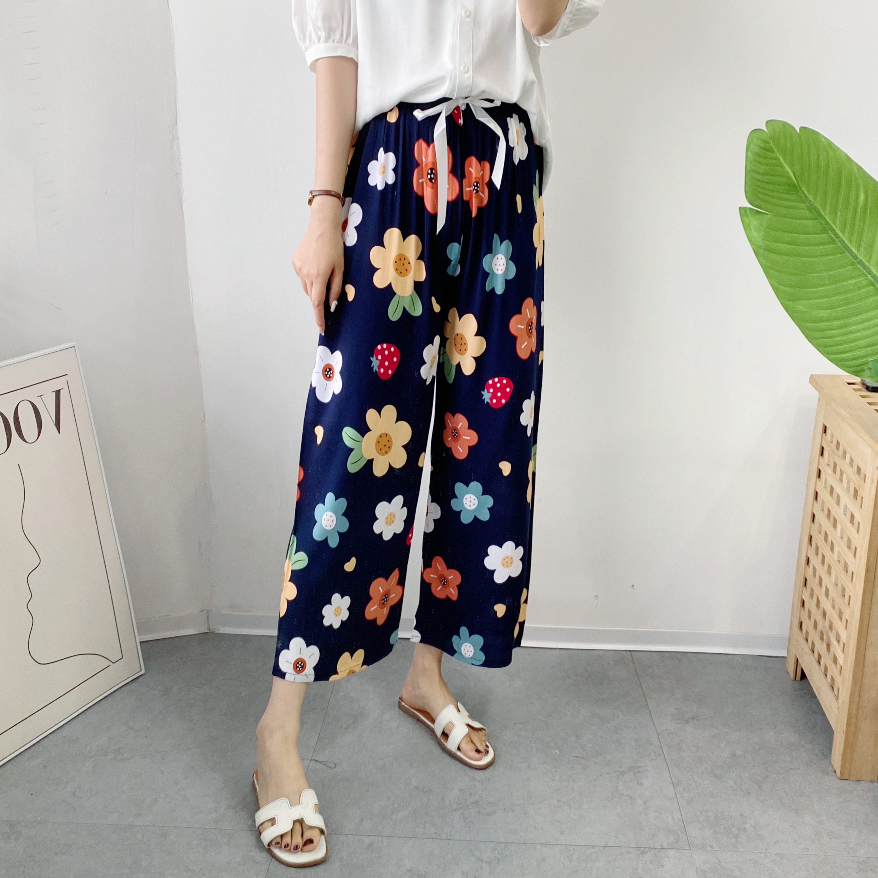 夏季薄款女士人造棉阔腿裤大码宽松显瘦休闲直筒裤外穿棉绸九分裤