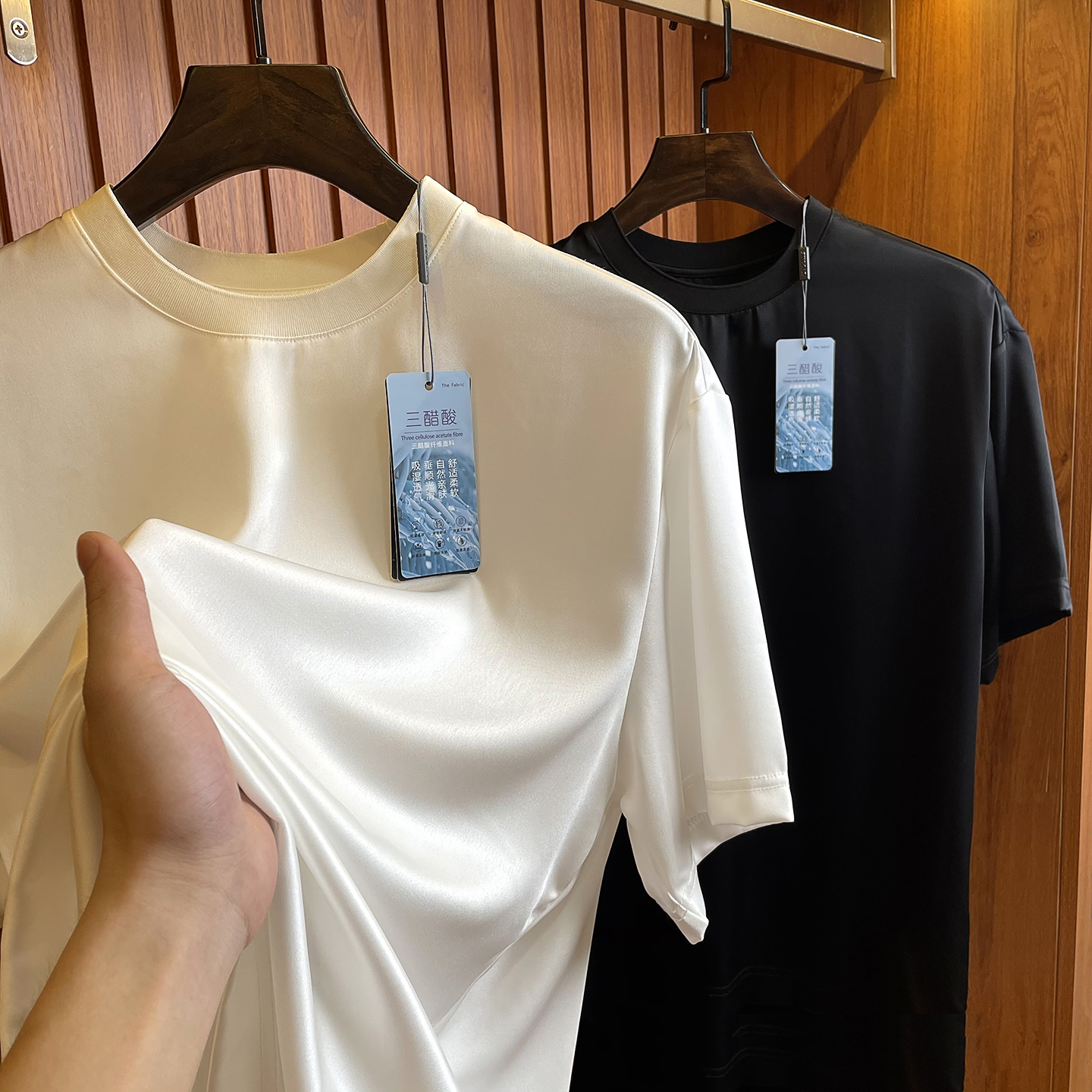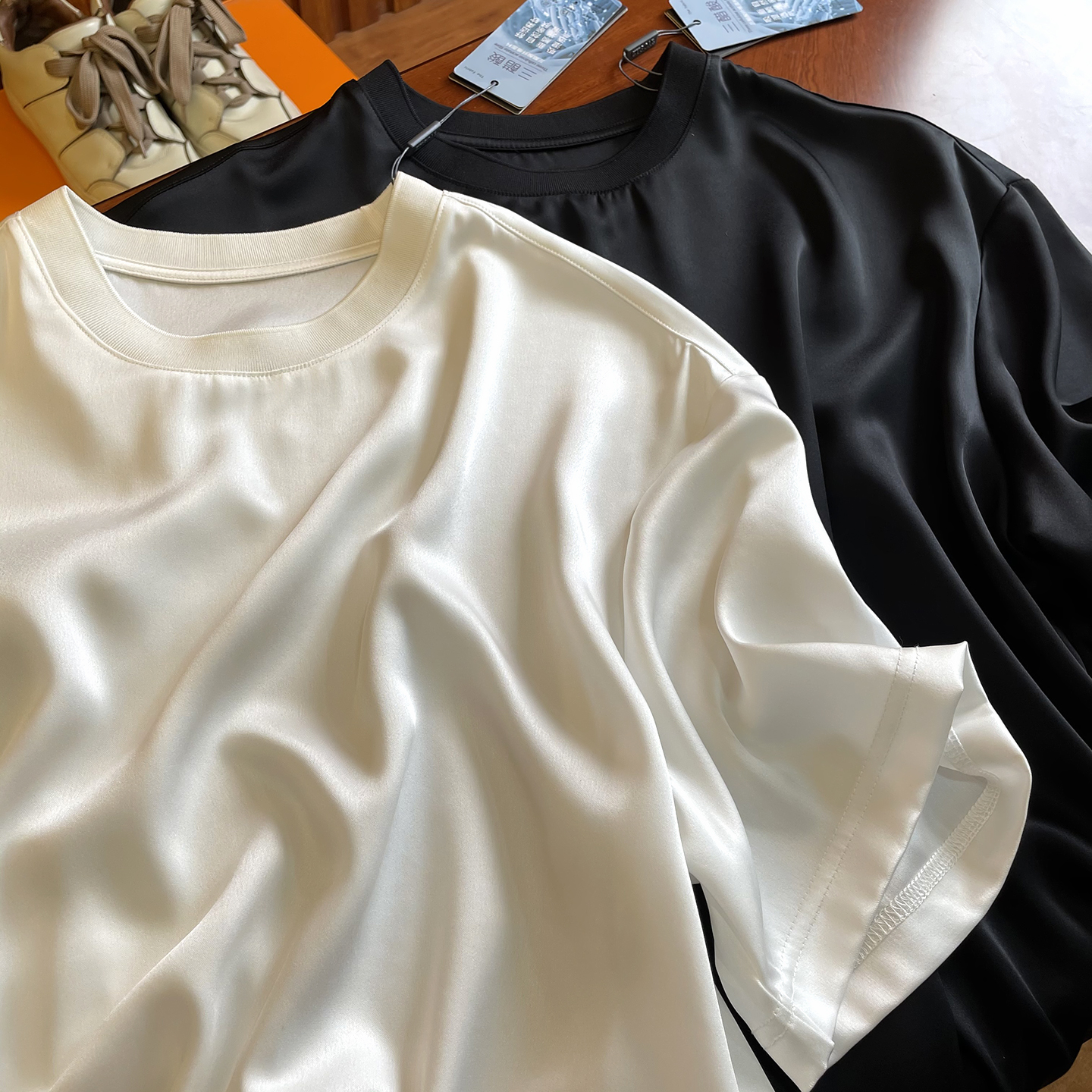 【堪比真丝Tee】日本三醋酸垂顺丝滑光泽缎面圆领短袖T恤男宽松