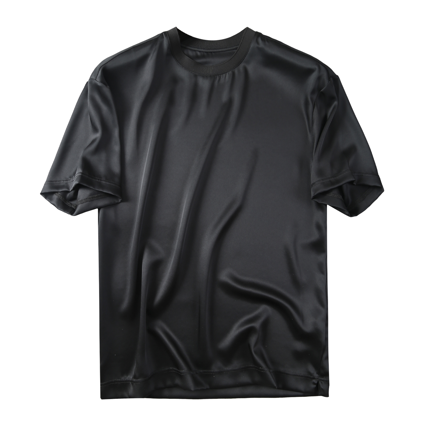 三醋酸光泽缎面短袖T恤男宽松