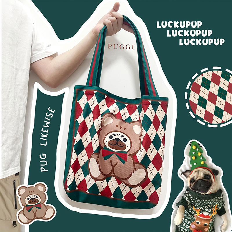 运气上升原创巴哥帆布包立体单肩包休闲托特包礼品手提通勤环保袋