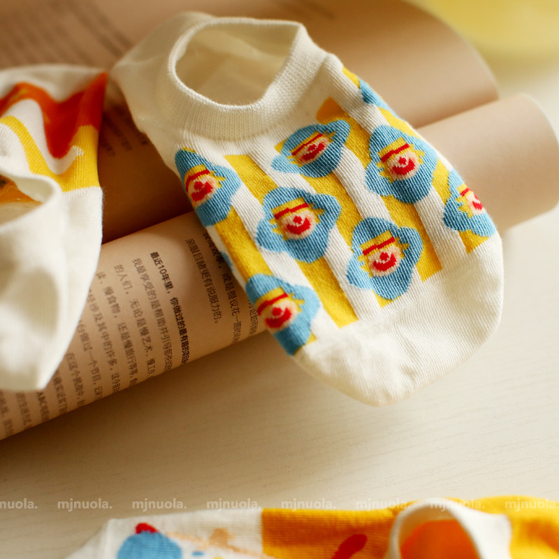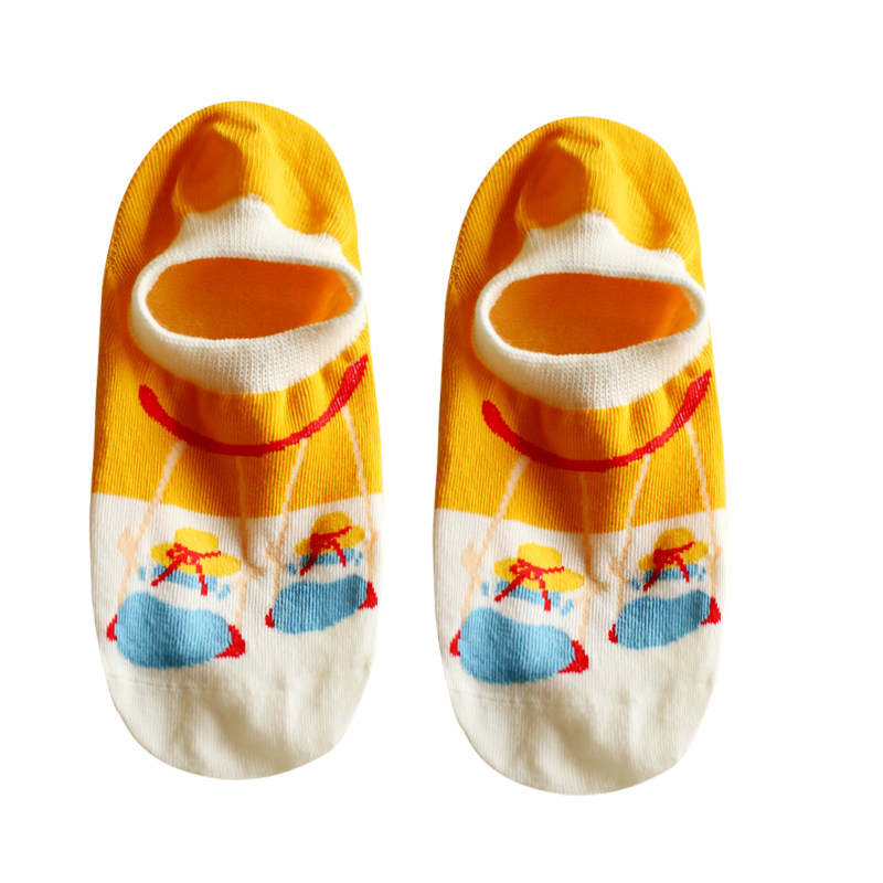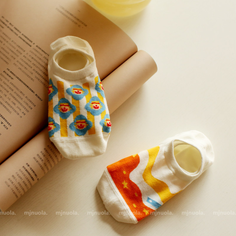 无骨缝合夏季原创ins潮涂鸦彩绘浅口隐形袜薄款防脱落纯棉船袜女