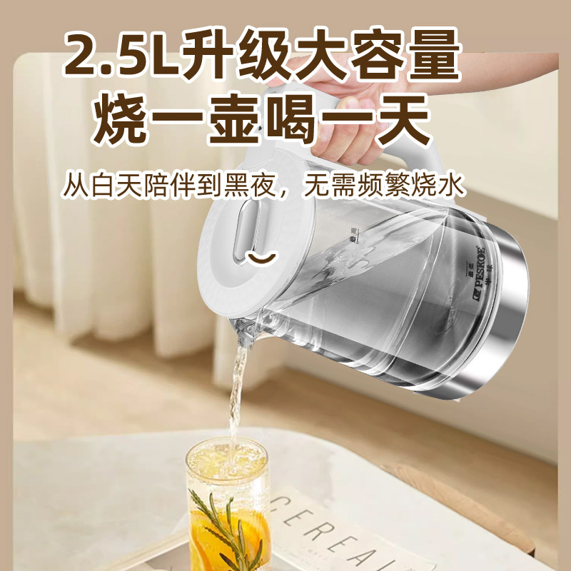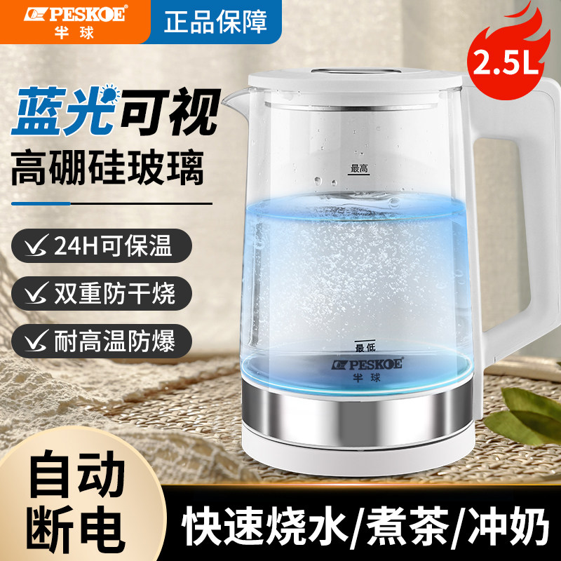 半球电热水壶家用高硼玻璃烧水壶304不锈钢保温一体自动断电2.5L