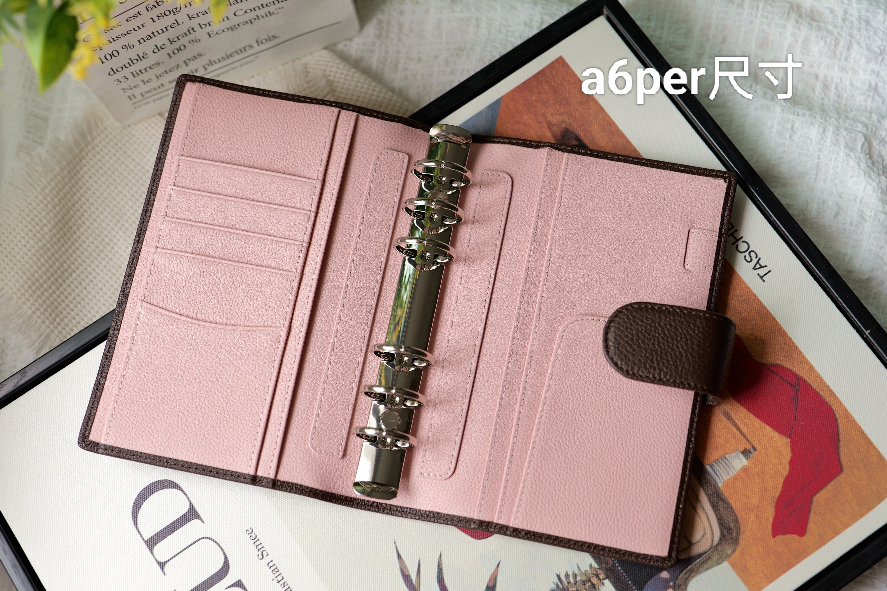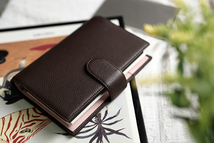 橙手帐棕粉拼色【樱花拿铁】牛皮活页手帐本