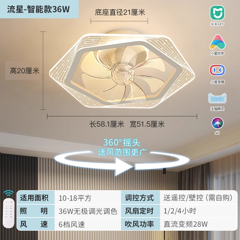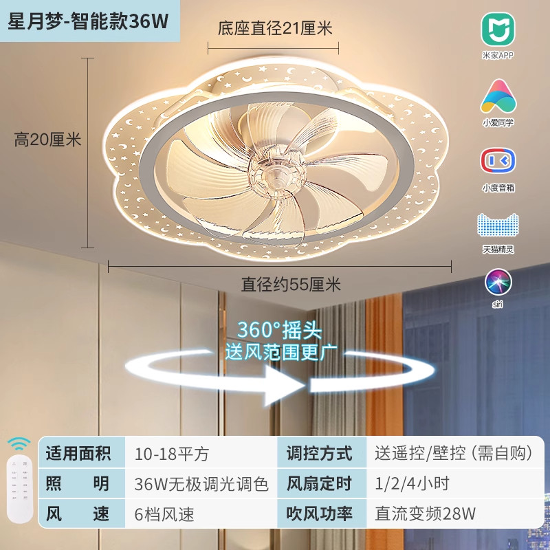 雷士照明风扇灯客厅餐厅卧室灯吊扇灯家用吊灯简约电扇智能可摇头