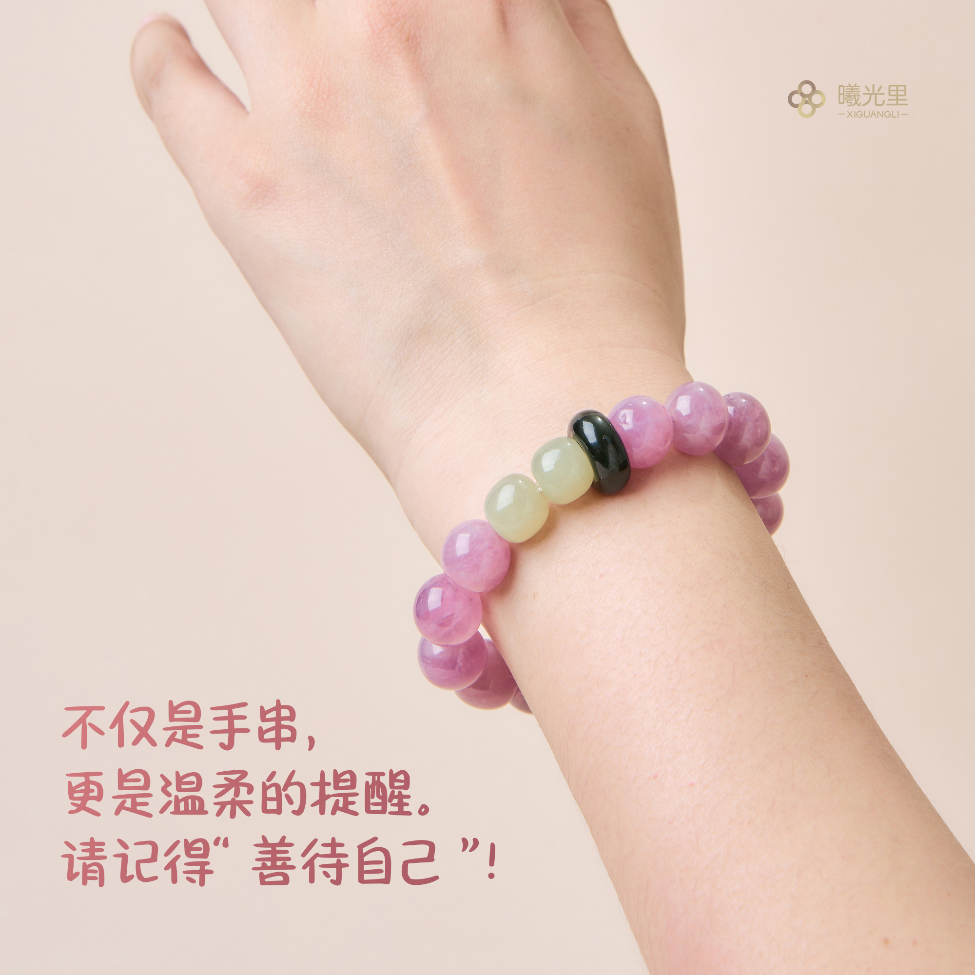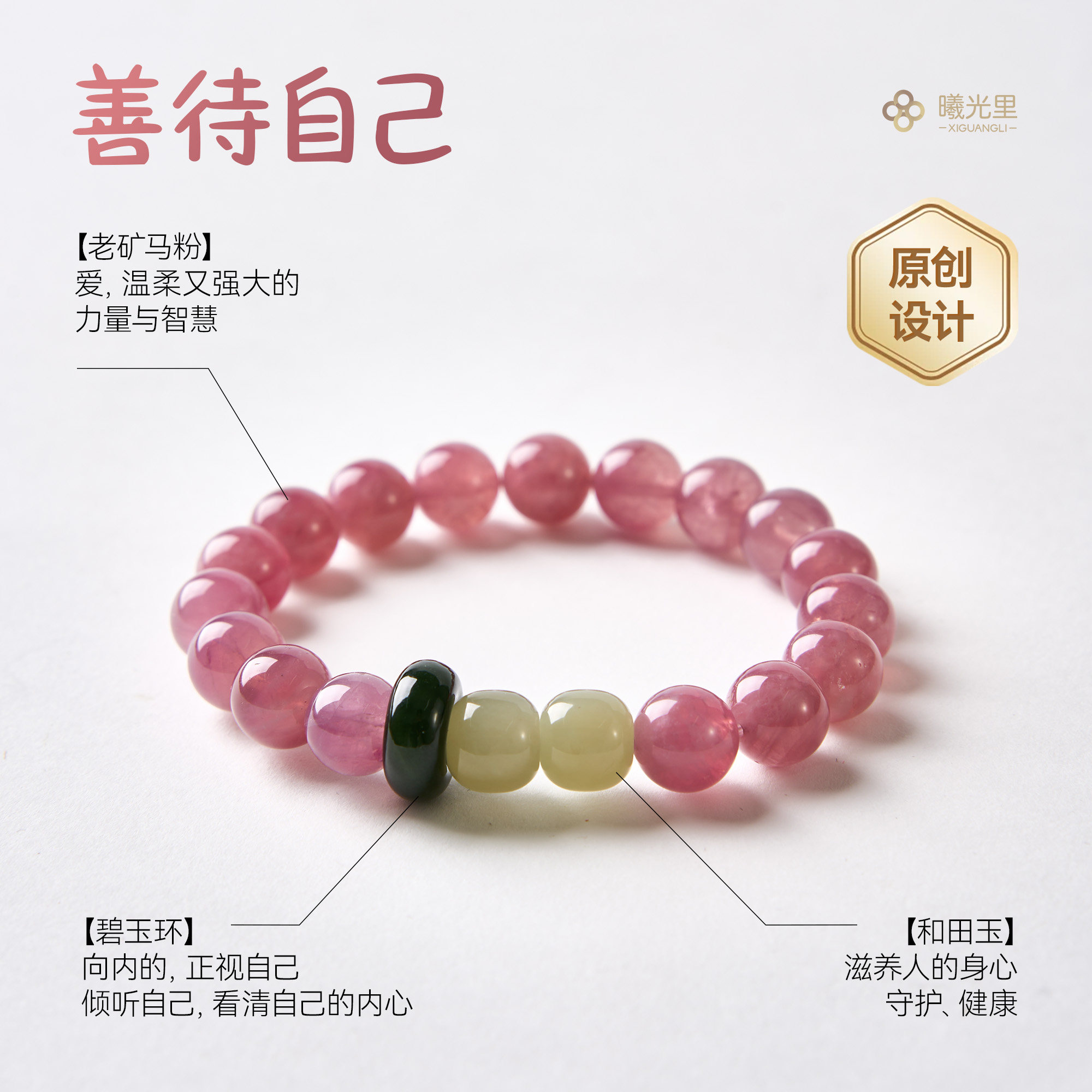 曦光里【善待自己】小众高级和田玉天然粉水晶手串手链女生日礼物