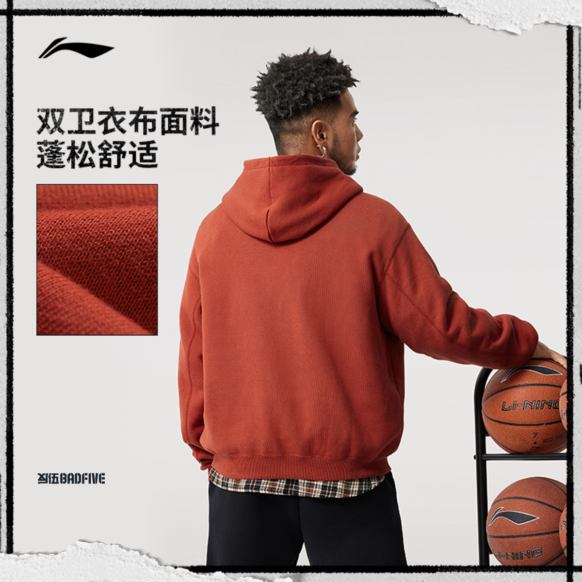 李宁反伍BADFIVE卫衣男2025新款运动百搭长袖连帽秋季针织运动服