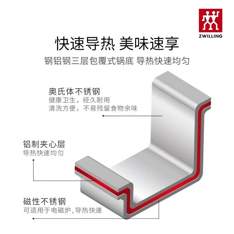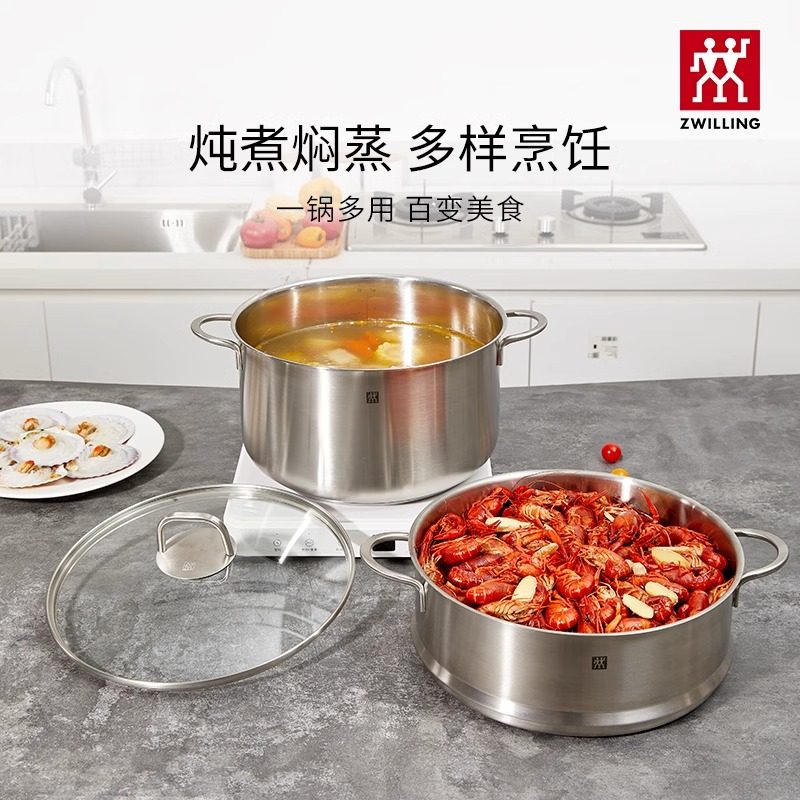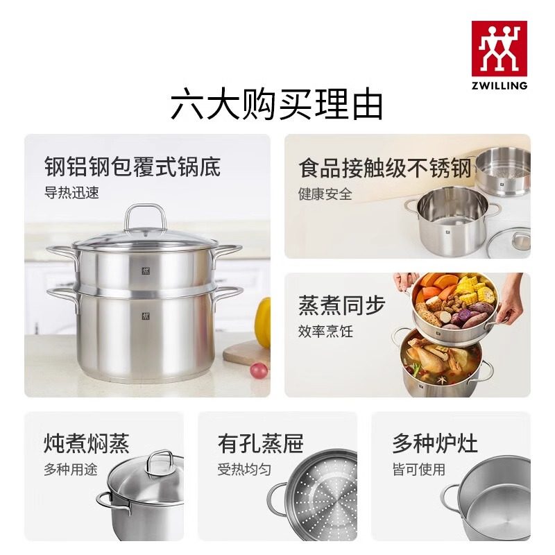 双立人24cm汤锅蒸笼不锈钢蒸锅蒸屉家用多层电磁炉燃气蒸煮锅官方