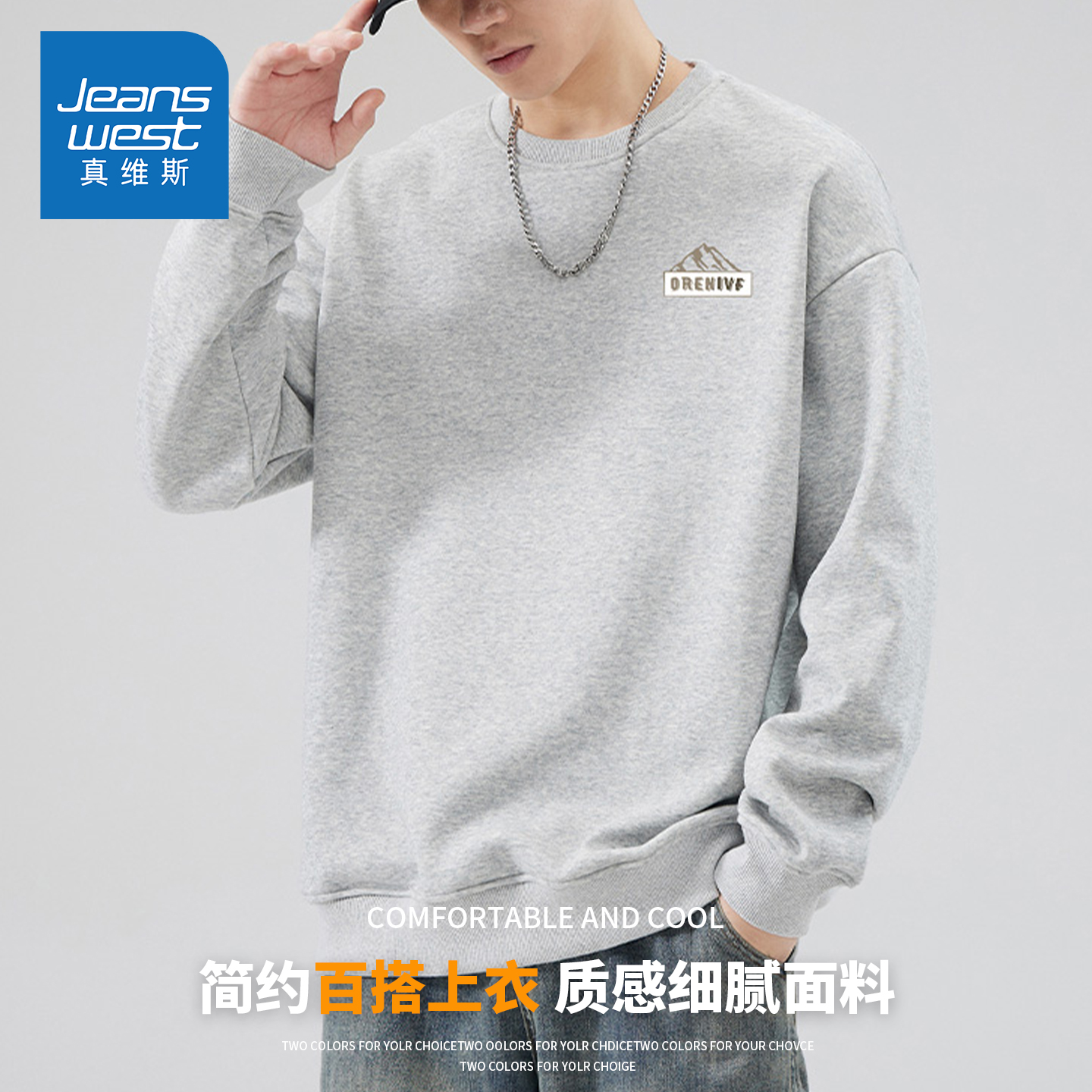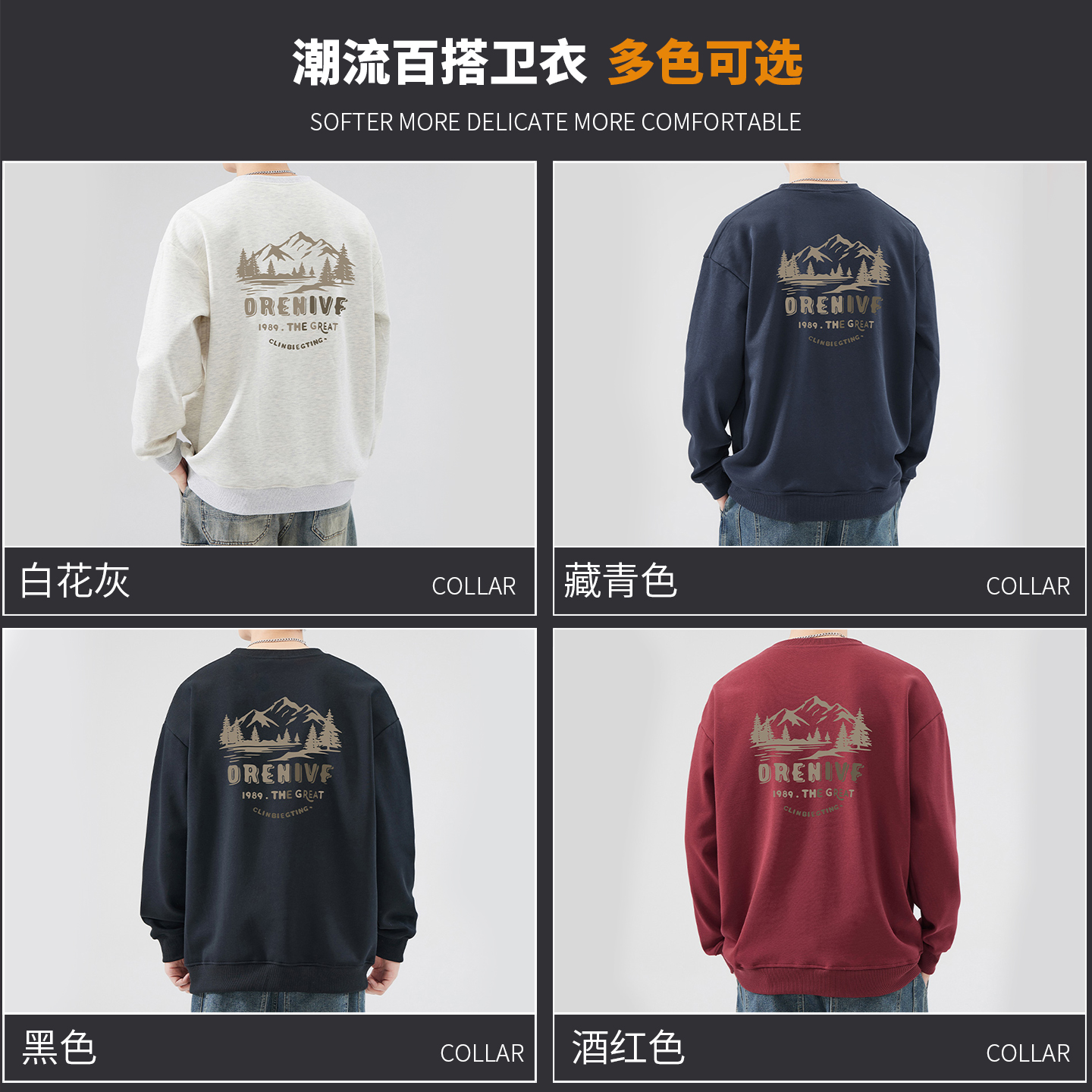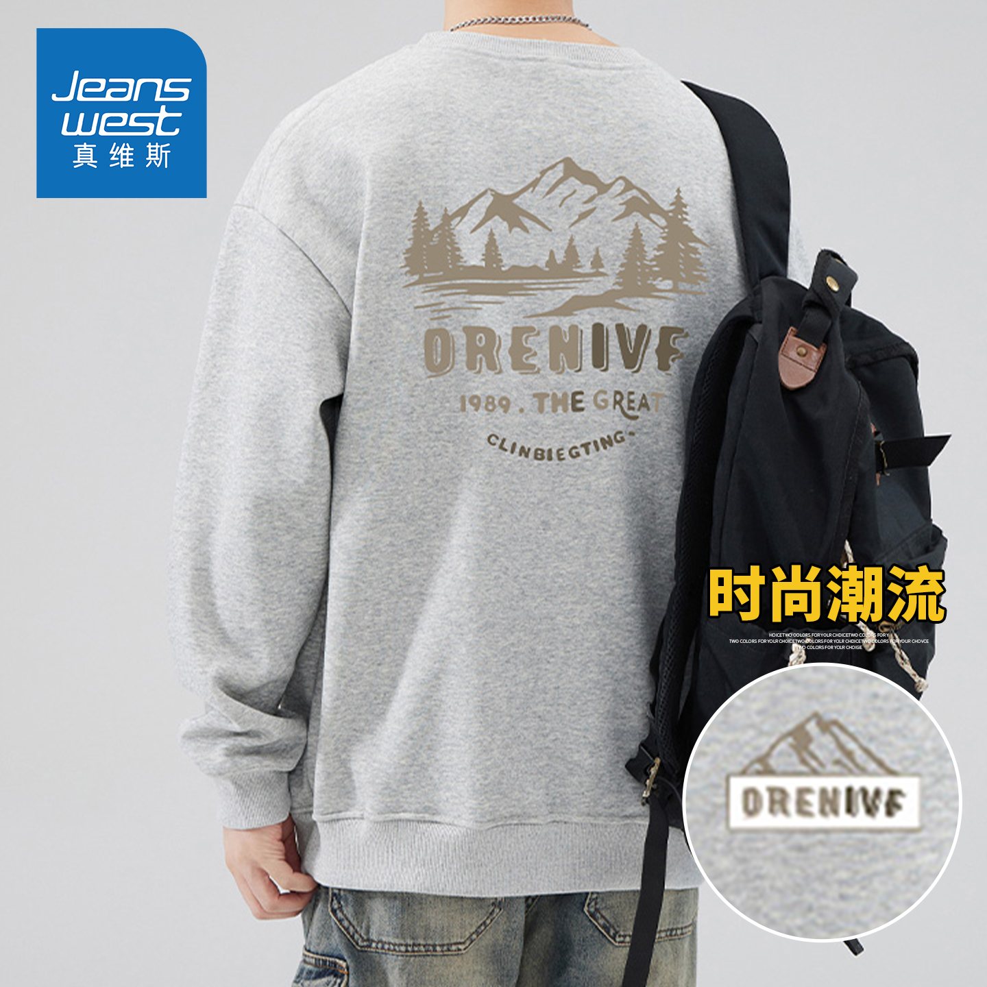 KZH真维斯加绒保暖长袖卫衣男秋冬新款宽松圆领潮流印花休闲上衣