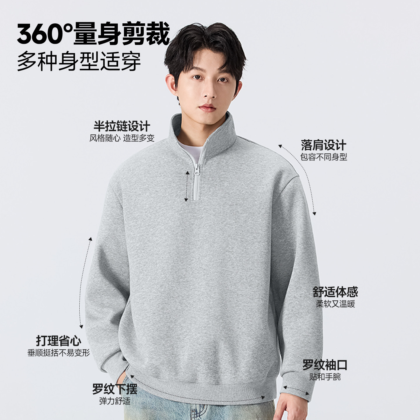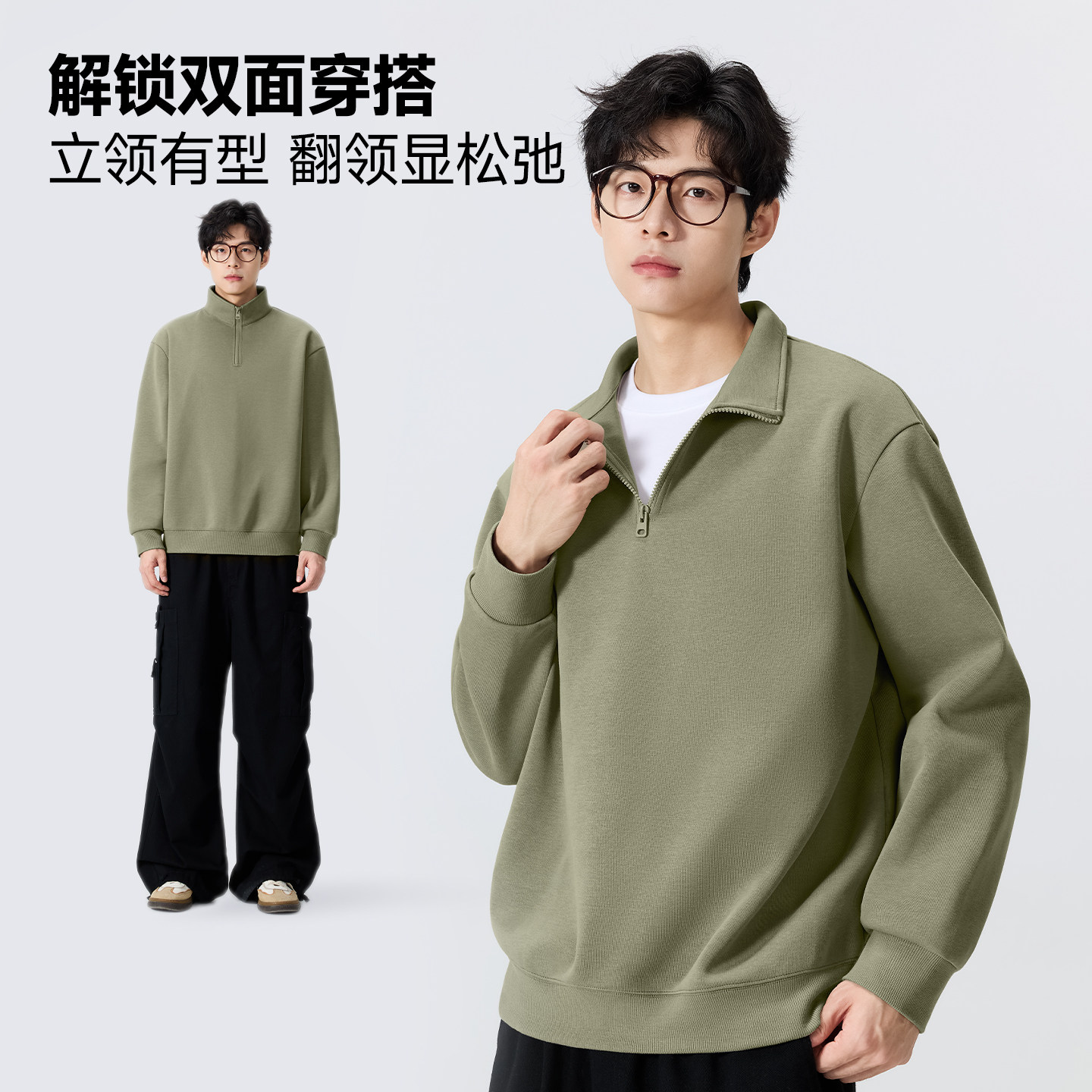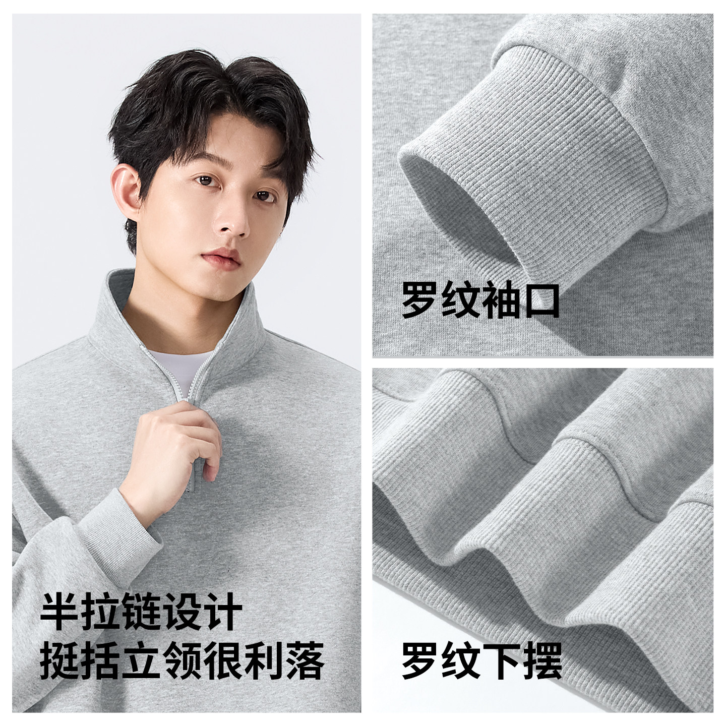 名创优品麻灰色两件套男款春季挺括感穿搭重磅立领卫衣卫裤套装Y