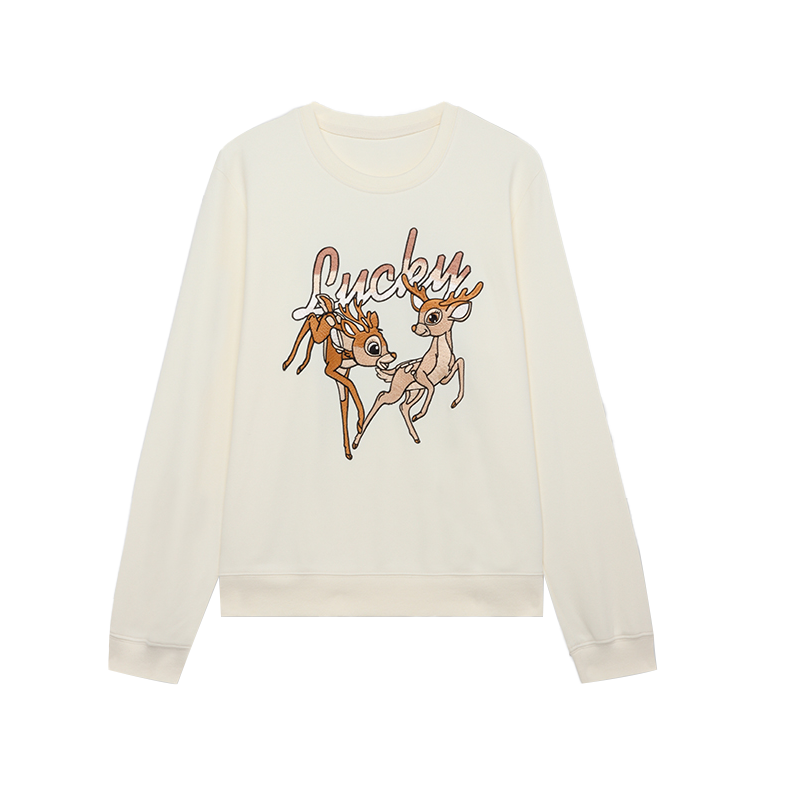 枫竺高端女装休闲小鹿刺绣套头圆领卫衣春秋2025新款百搭长袖上衣