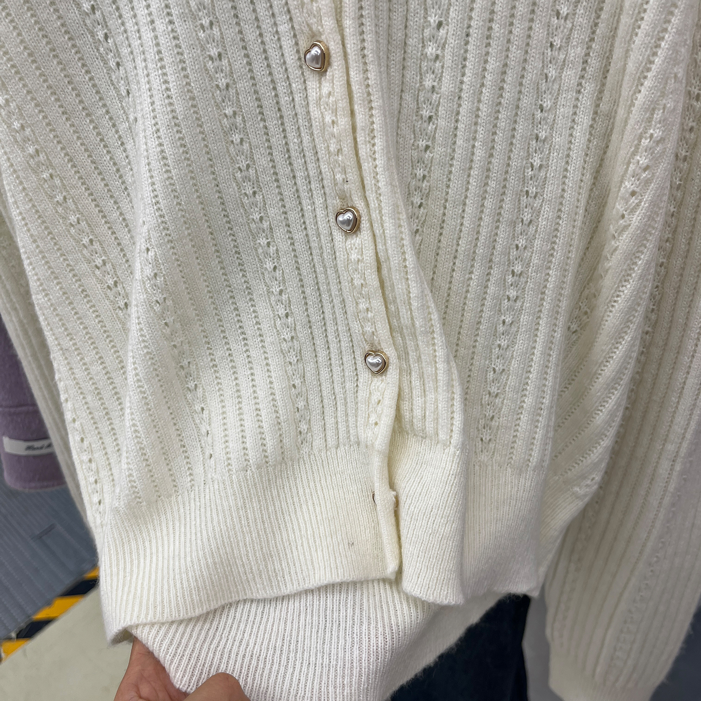 Allo十三行女装新款韩系小香风长袖针织衫女宽松镂空麻花毛衣外套