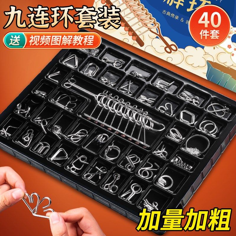 九连环智力解扣益智玩具鲁班锁孔明锁全套儿童小学生24件益智玩具