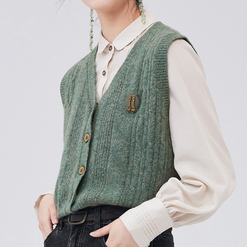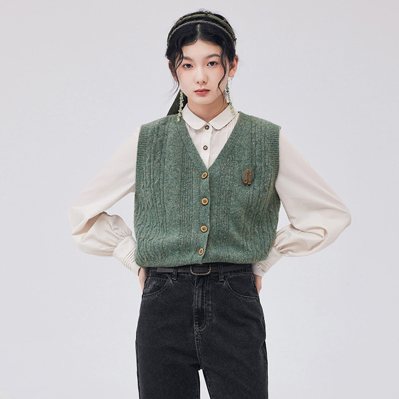 【明星同款】D-HARRY/迪哈利复古优雅V领针织马甲DH233C96376D