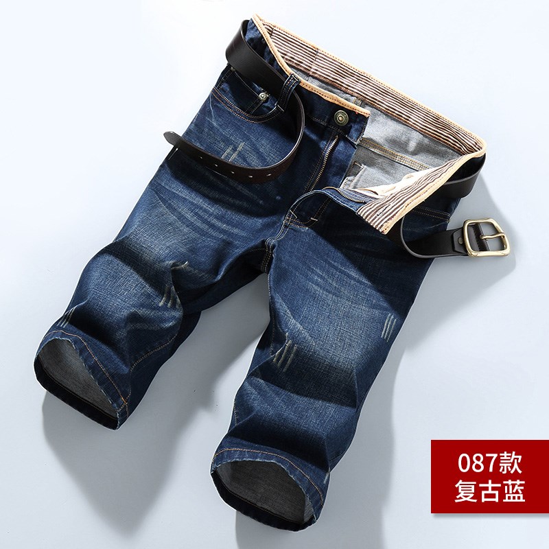 薄款牛仔裤男士修身弹力马裤5分裤子牛仔短裤夏季宽松五分裤中裤