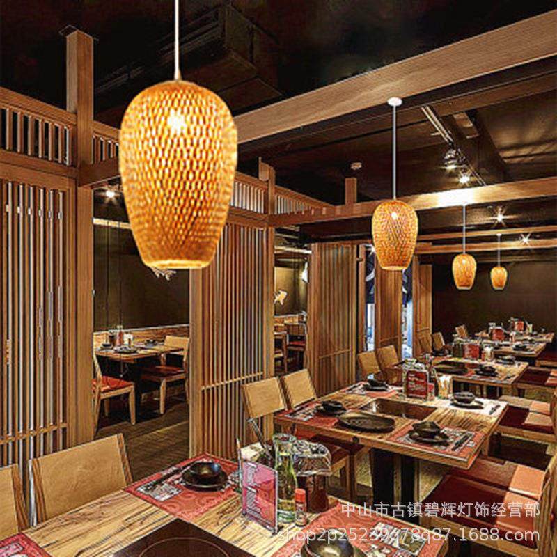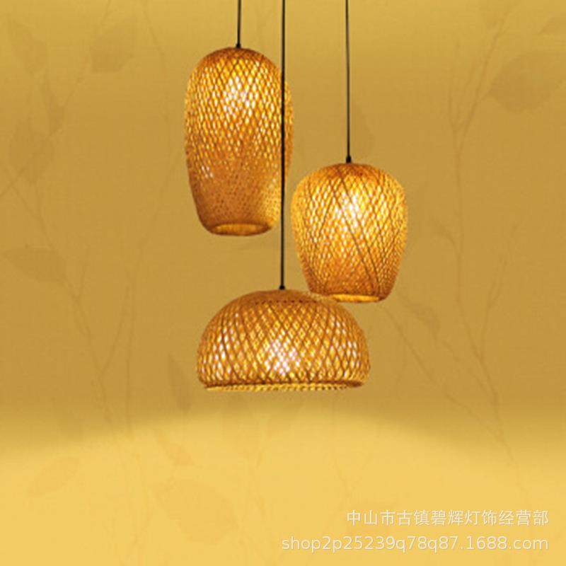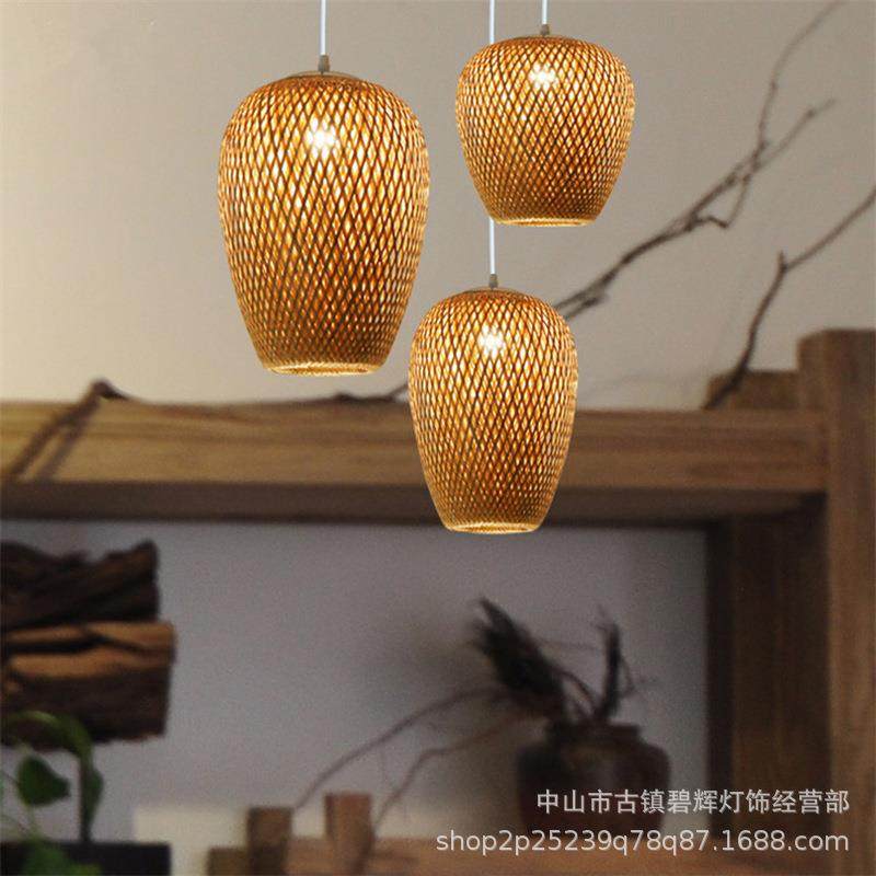 餐厅吊灯简约创意田园竹编艺术书房卧室新中式阳台玄关三头灯
