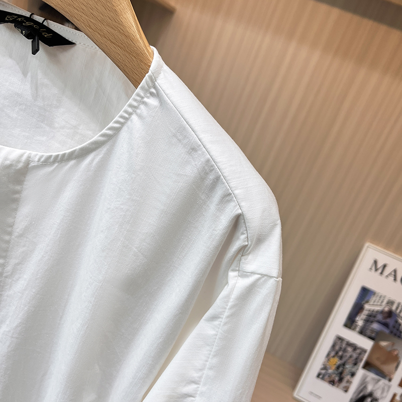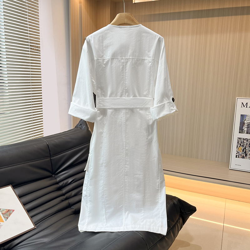 走戏班牙!秋季新款极简风休闲圆领衬衫式收腰显瘦中长款连衣裙女