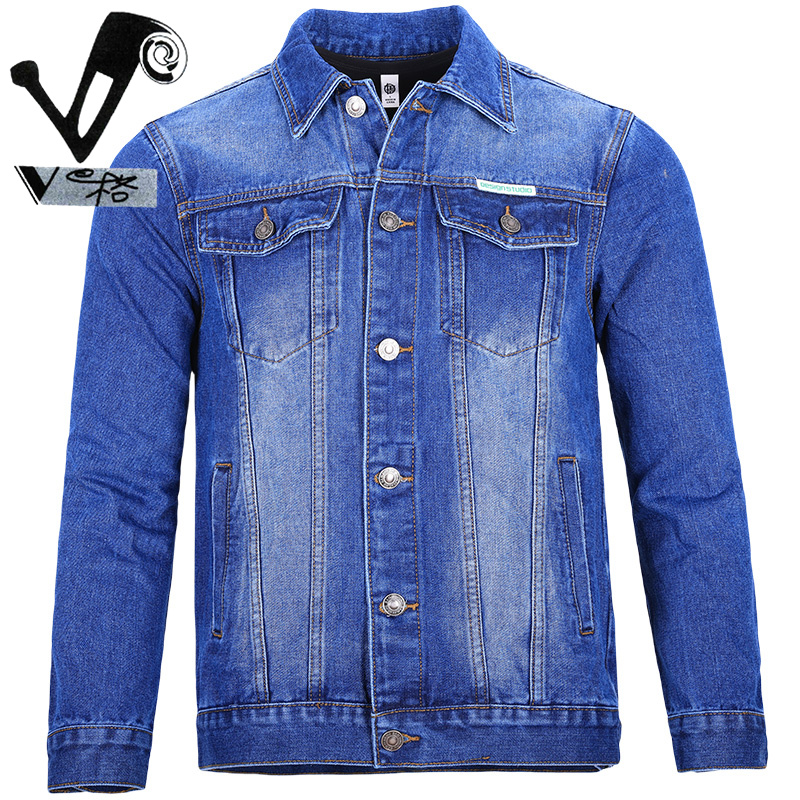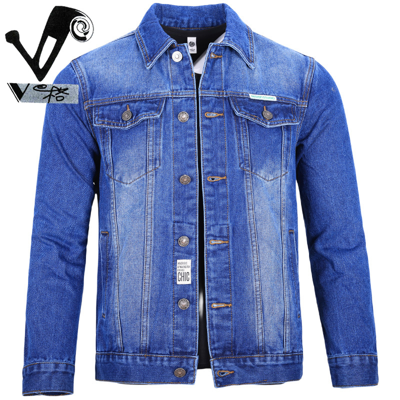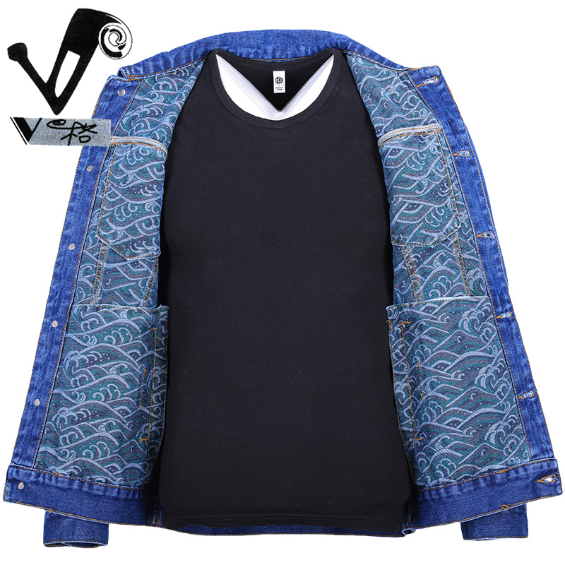 高档百搭牛仔外套男日系休闲秋冬厚款宽松大码复古印花内里夹克