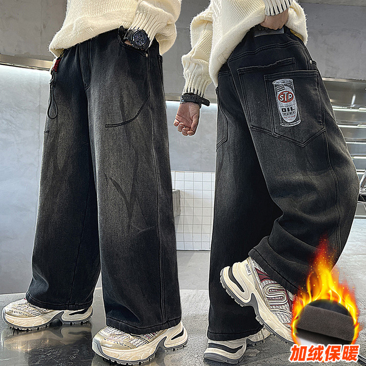 儿童装男童加绒裤子冬装2025新款加厚男孩中大童秋冬款牛仔冬季潮