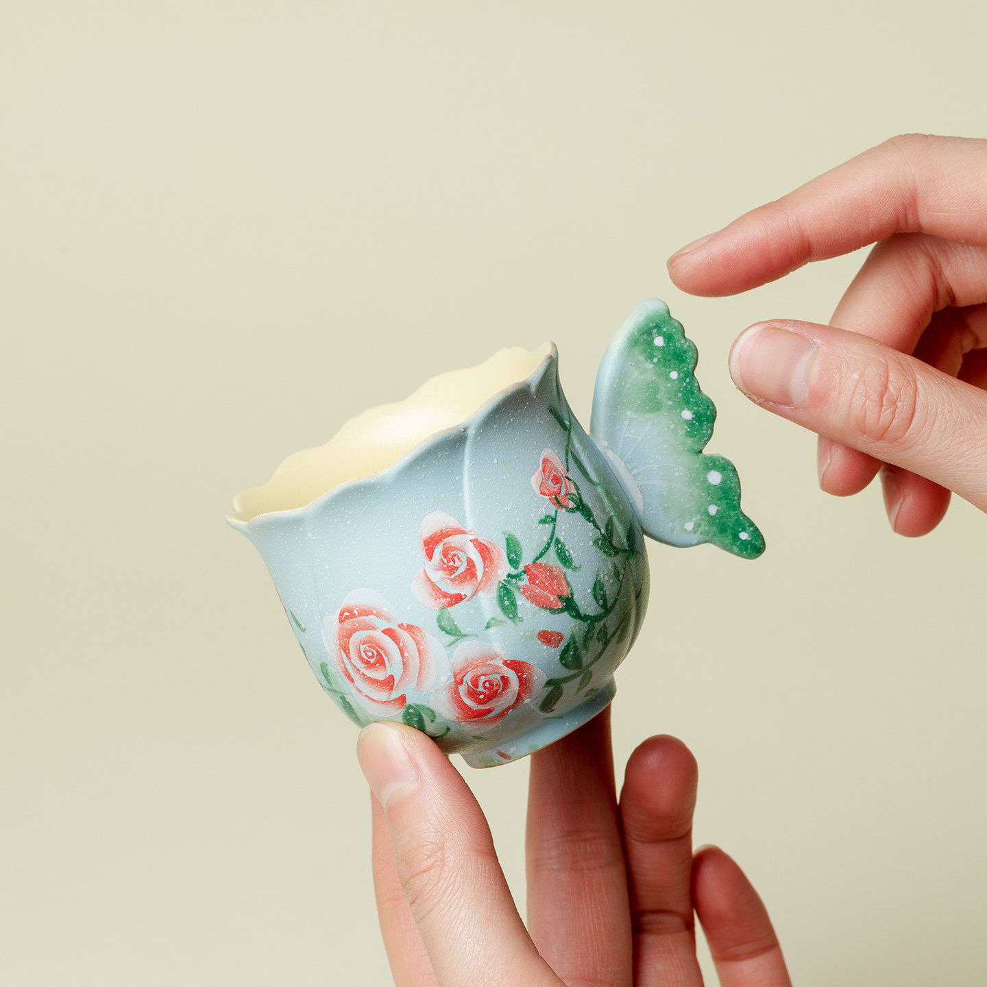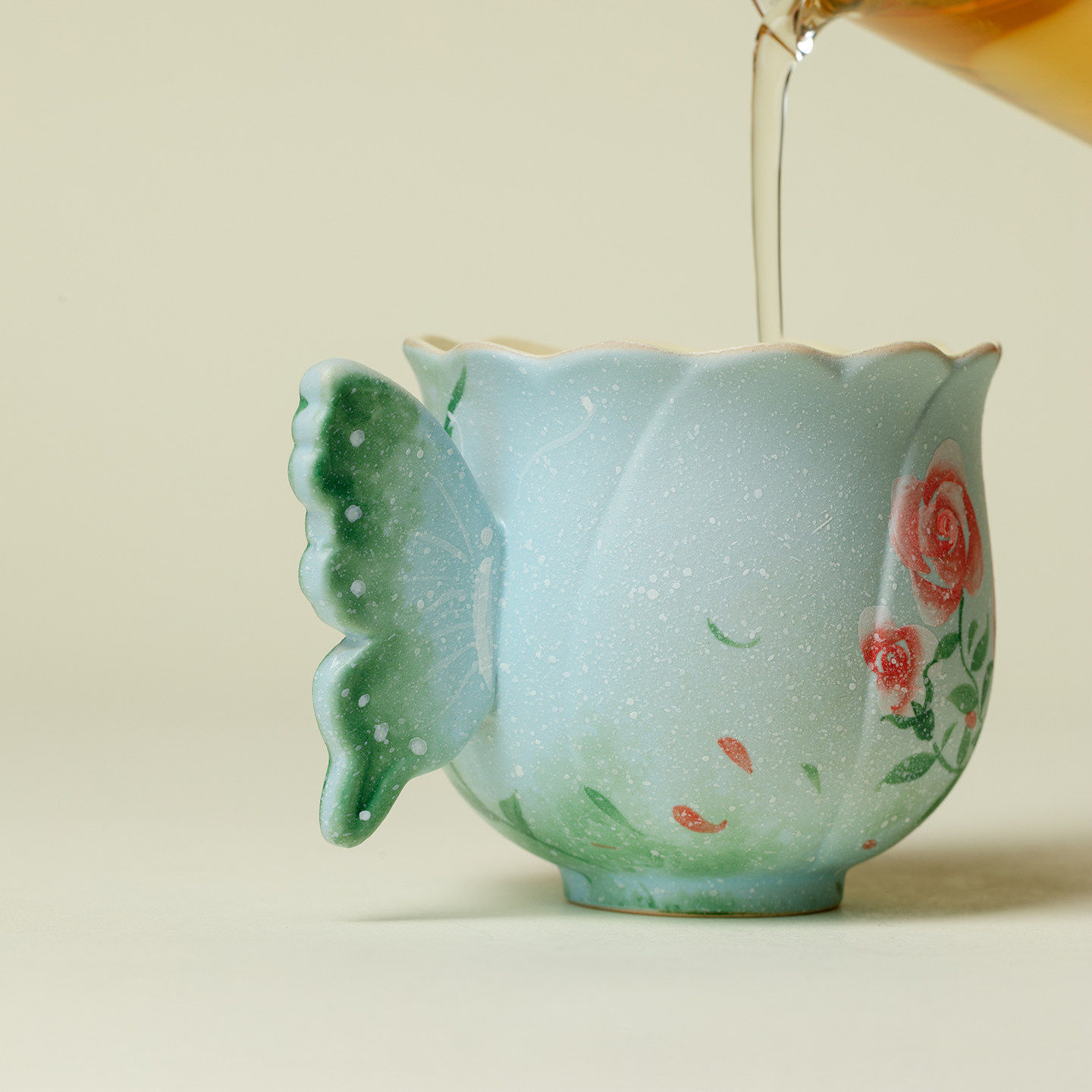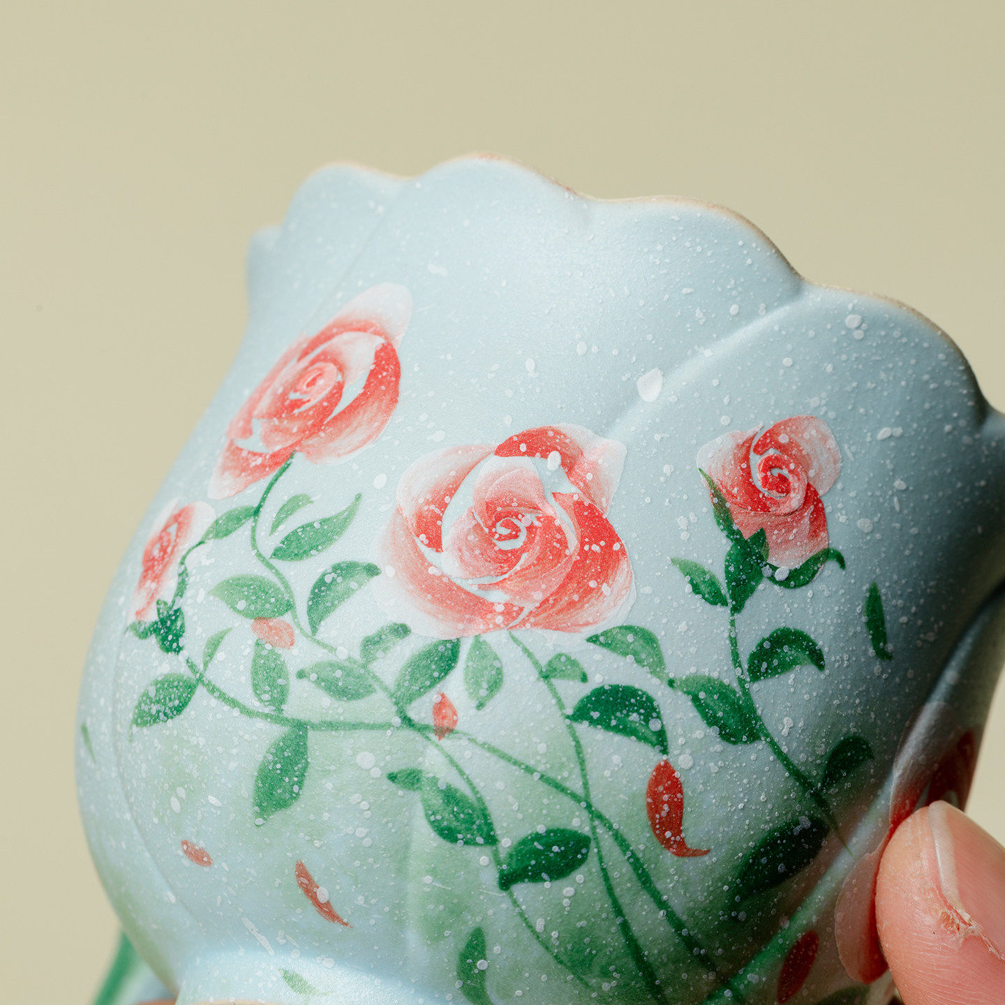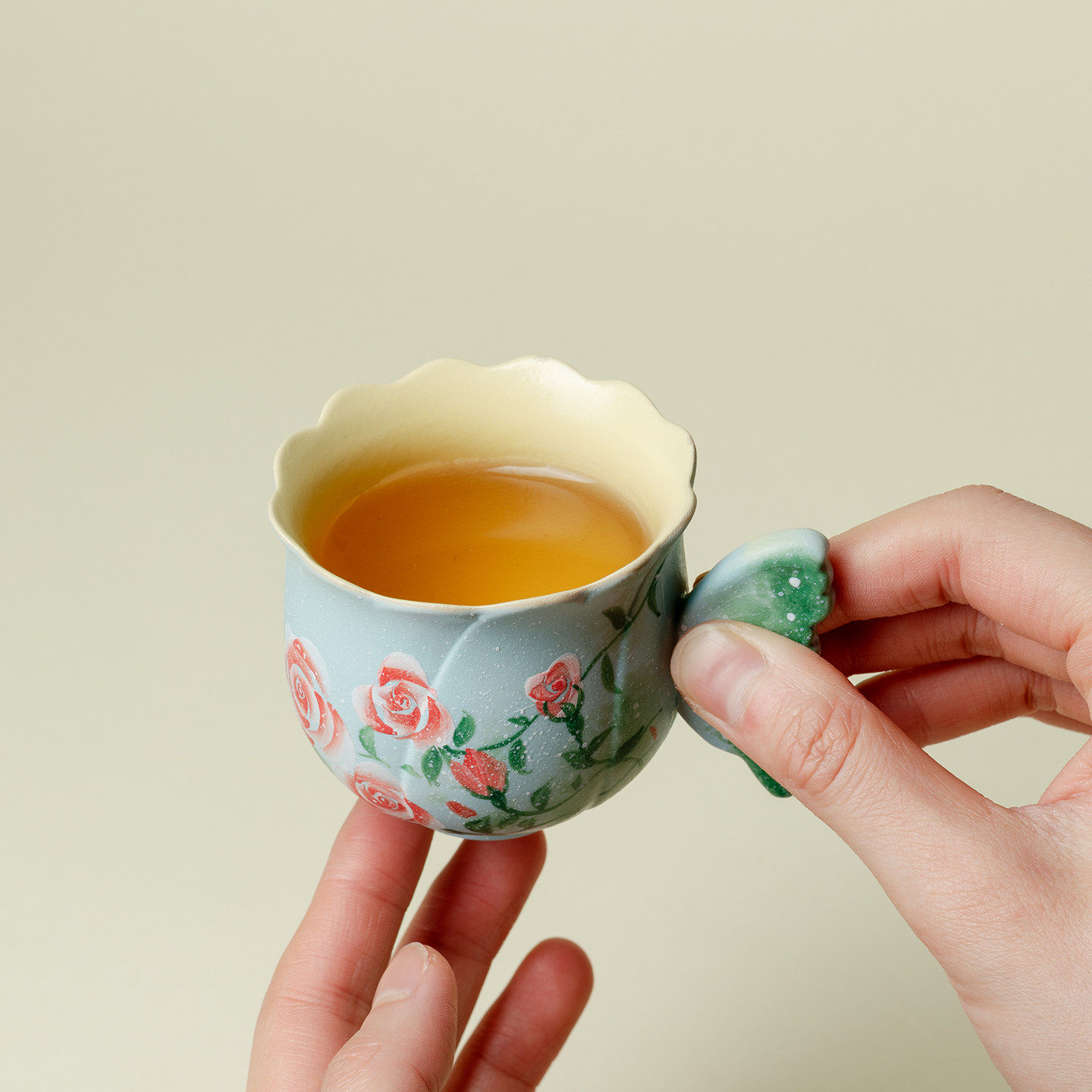 里作纯手绘玫瑰漫花主人杯精致女士功夫茶杯高颜值家用喝茶杯单杯