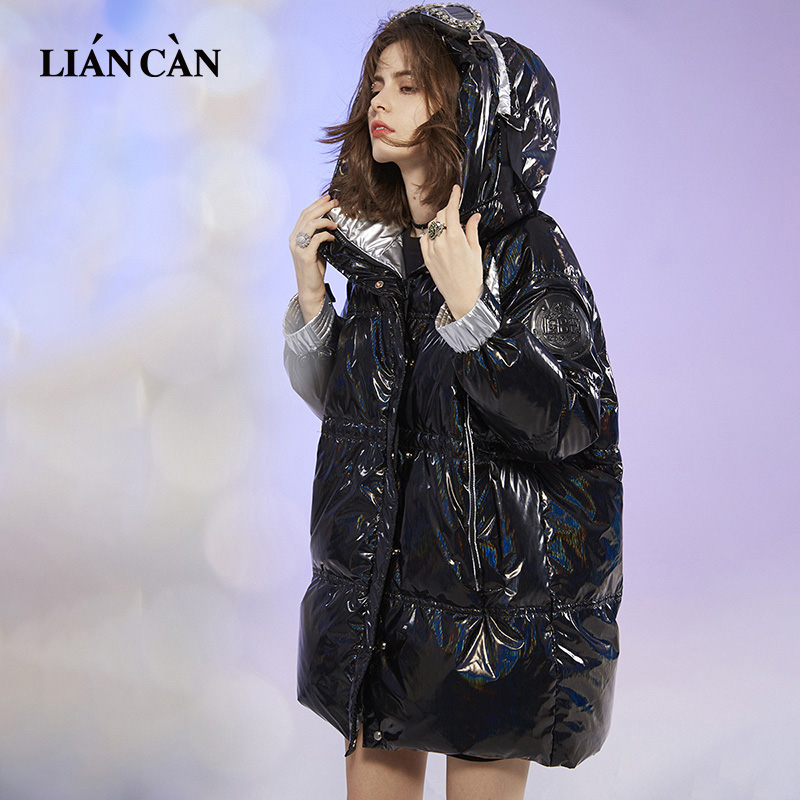 卡佛莲灿清仓裂帛新宽松休闲连帽面包服亮面漆中长款羽绒服