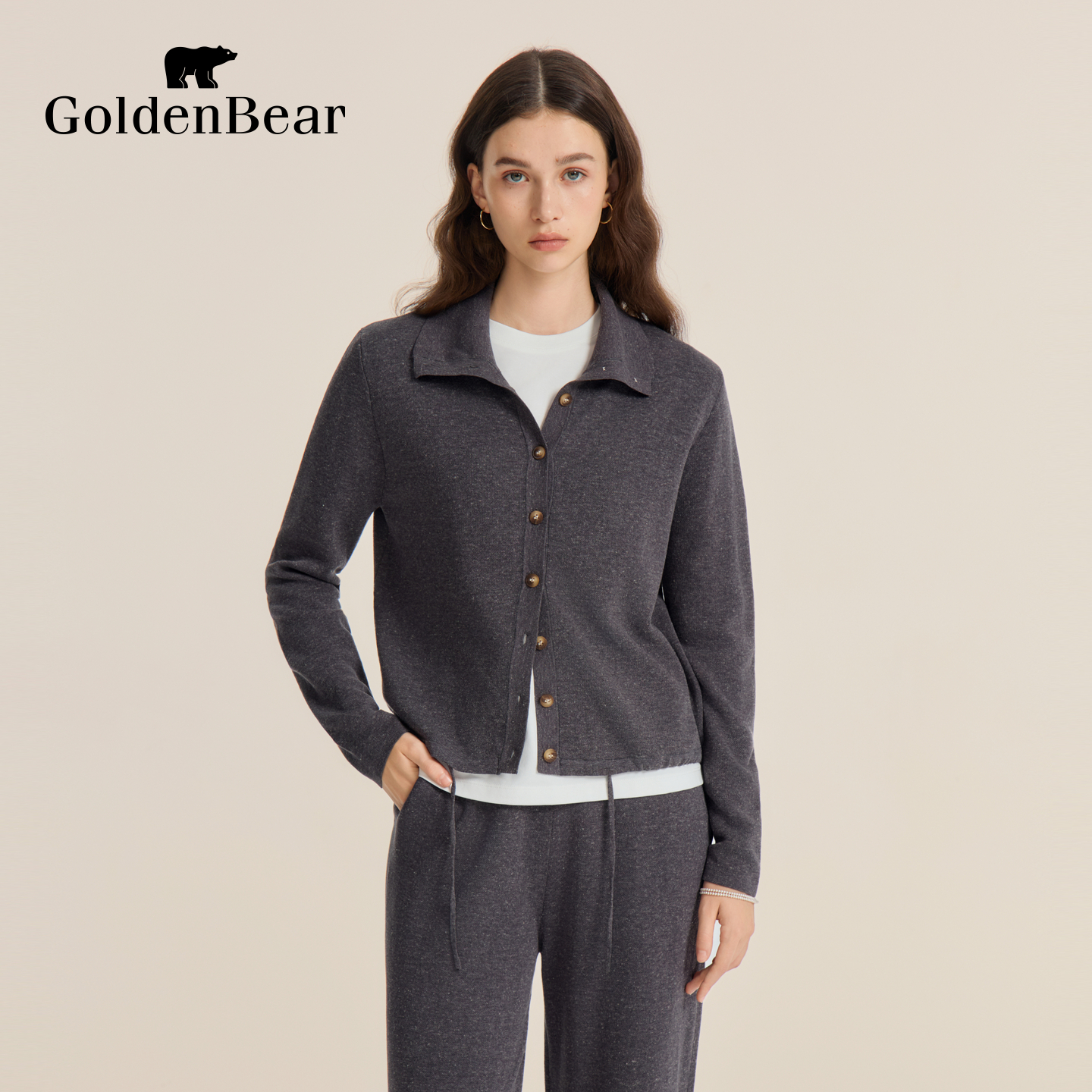 【秋季新品】GOLDEN BEAR/金熊 新款女士含亚麻开衫长袖针织衫