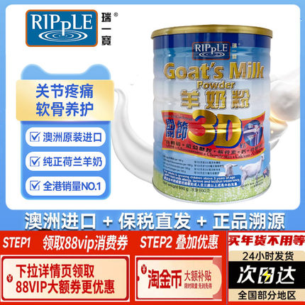 Ripple香港瑞一宝进口3D关节羊奶粉高钙成人奶粉900g