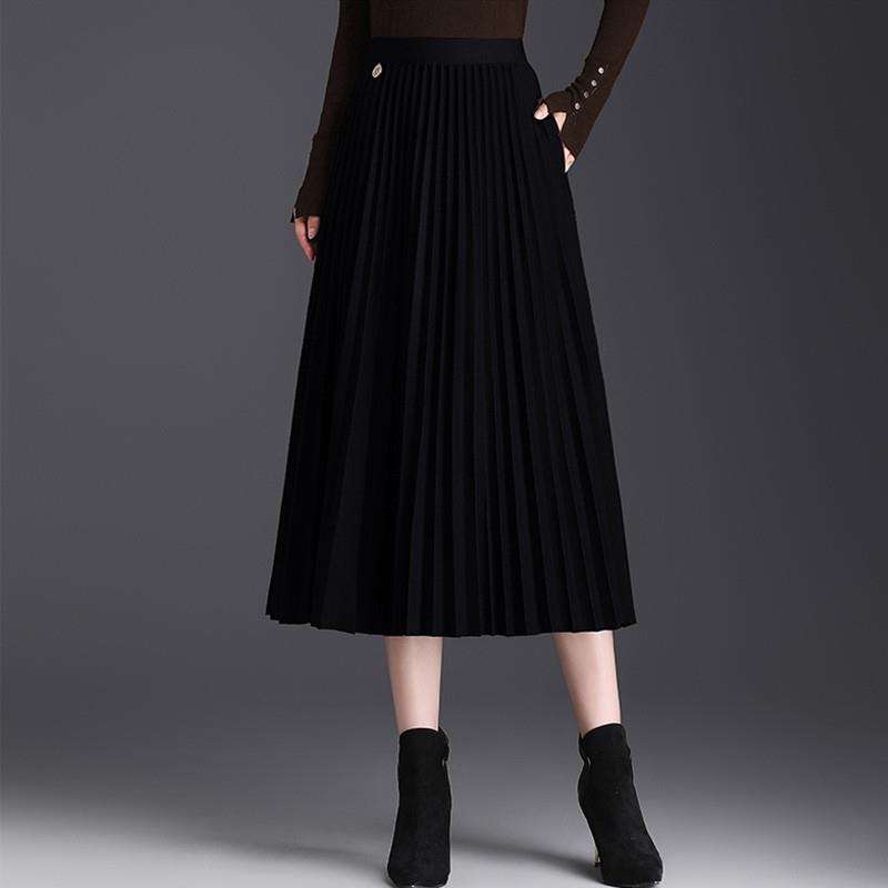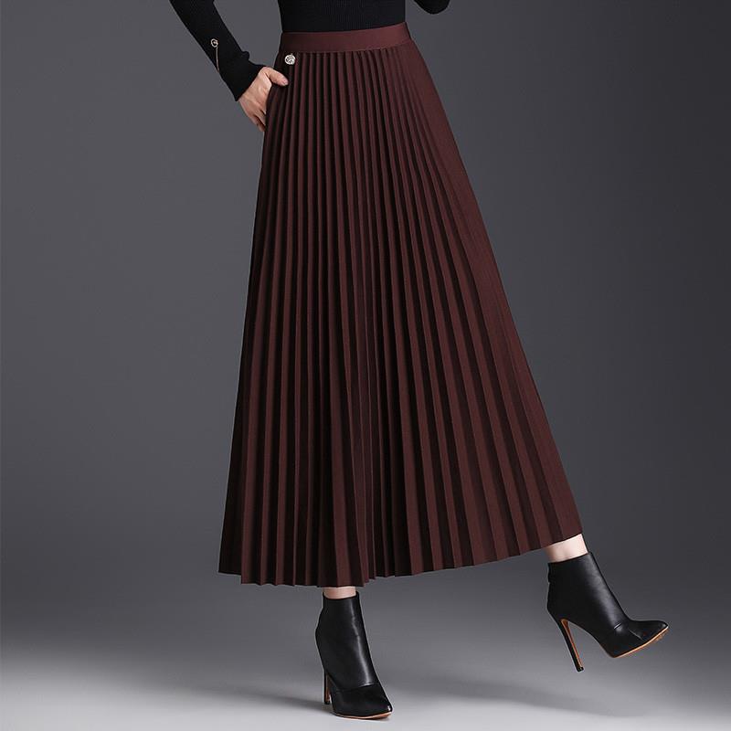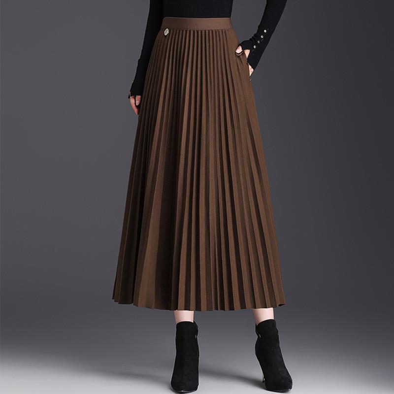毛呢高腰半身长裙女士A字伞裙子百褶裙配大衣冬裙秋冬款2025新款