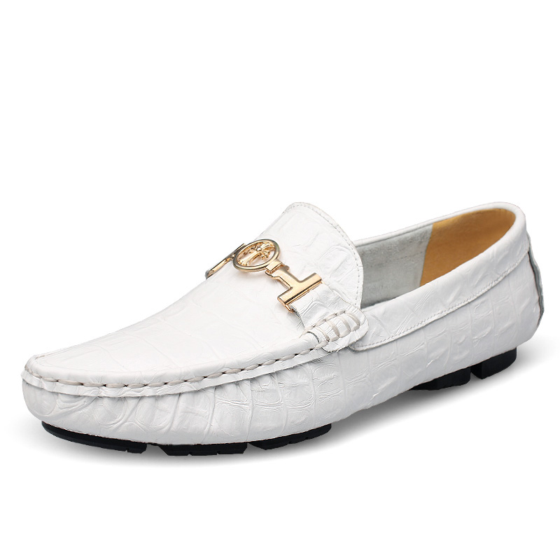 夏季韩版潮鞋豆豆鞋男真皮鳄鱼纹男士休闲鞋小码男鞋时尚懒人皮鞋