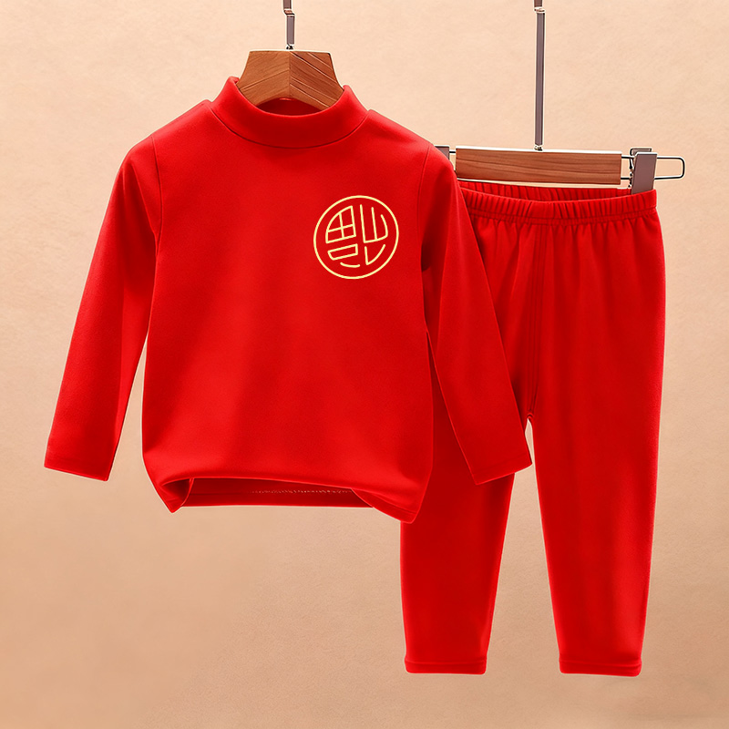 儿童本命年内衣秋衣秋裤套装2026马年衣服男孩女童中大童德绒红色