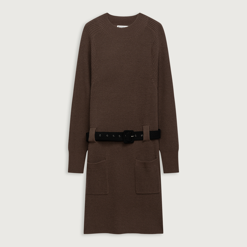 播羊毛收腰连衣裙女商场同款气质温柔圆领内搭针织长裙BDQ9LD1958