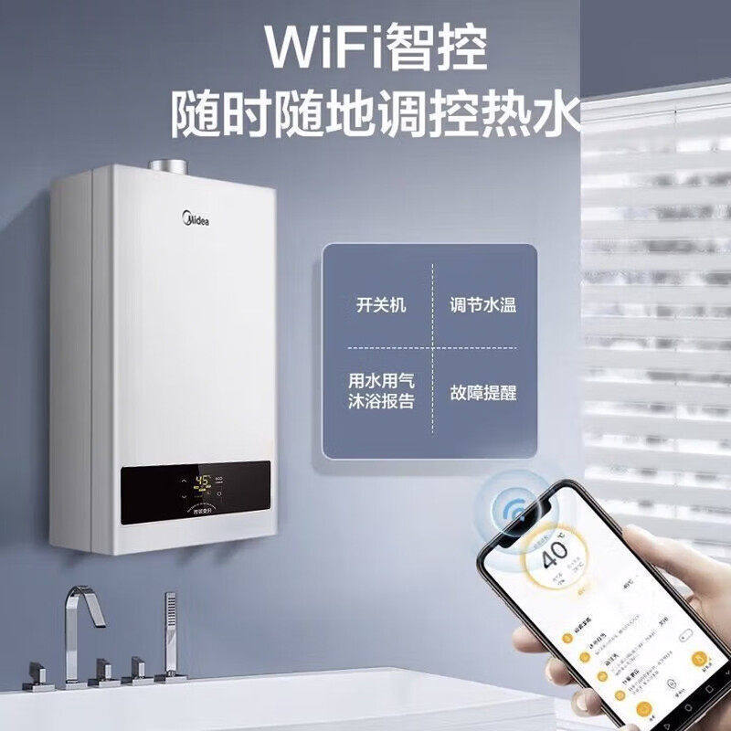 Midea/美的燃气热水器租房家用14L智能抑菌速热节能省气官方